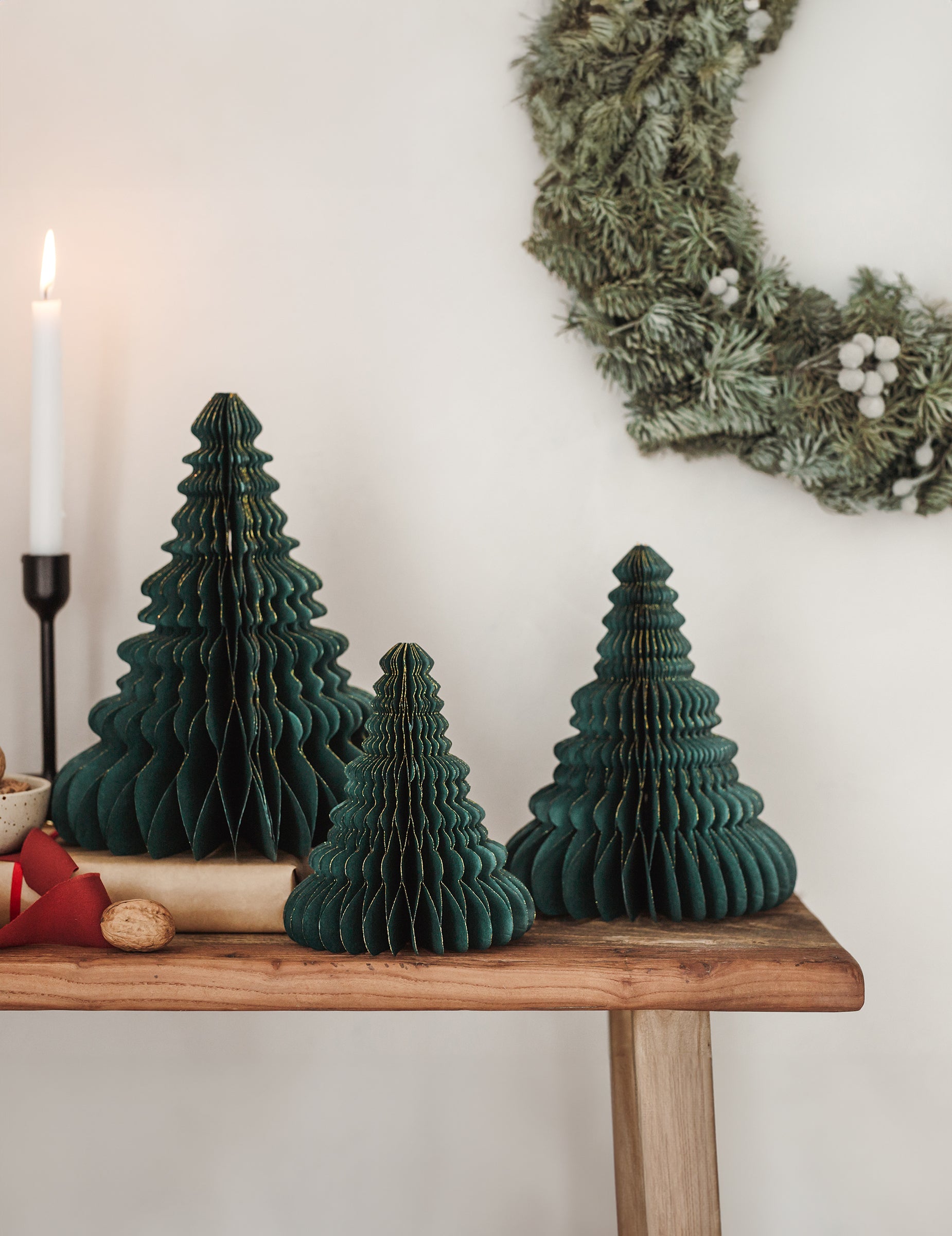 Dobd fel a belső teredet ezzel dekoráció méhsejtpapírból készült, 15 cm magas cm. Sportolás egy formája fenyőfa Palaczöld, arany díszítéssel, ez a kiegészítő egy csipetnyi kifinomultságot visz az ünnepi hangulatba. díszes fenyőfa asztaldíszként használható, vagy a fa ágai közé akasztható karácsonyi.