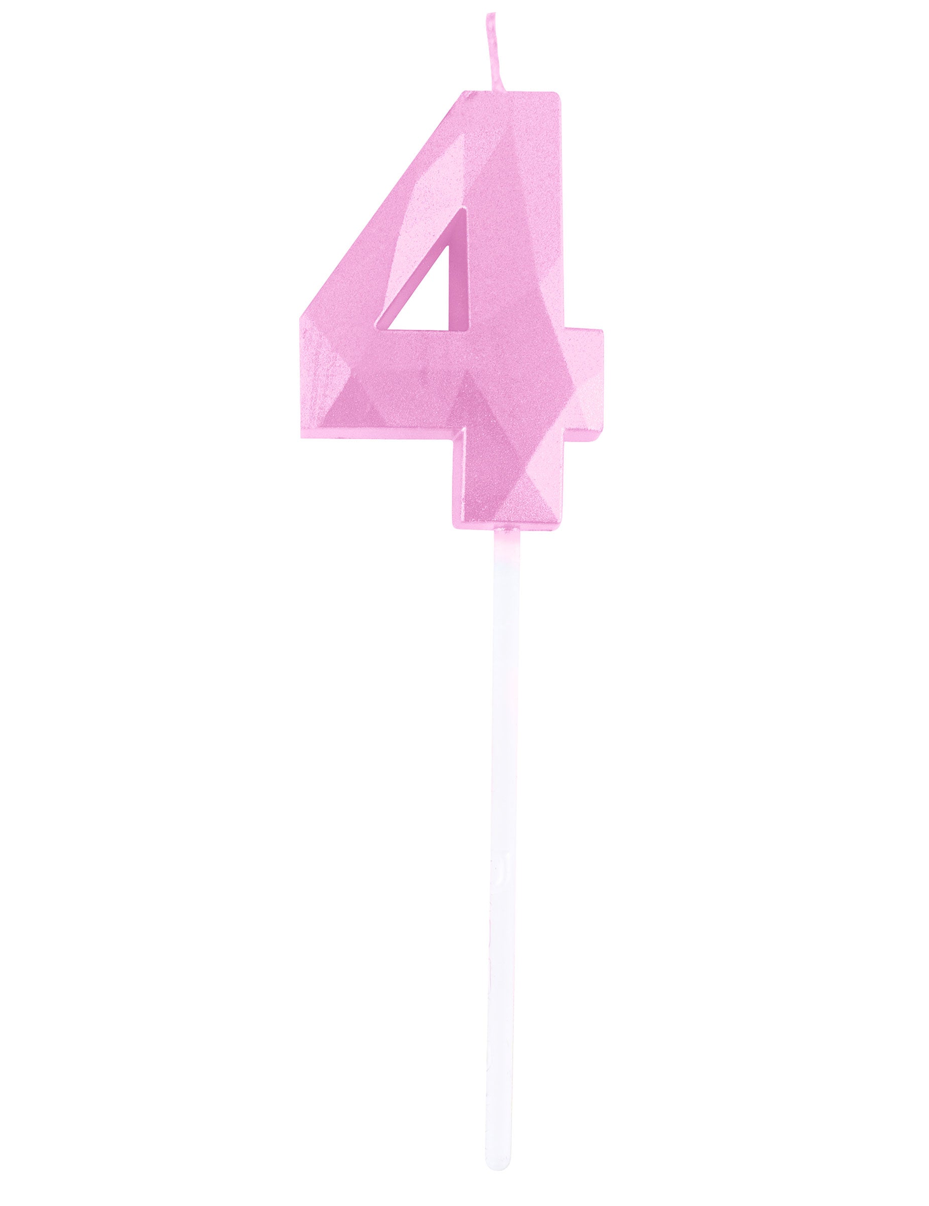 Bougie chiffre rose pastel effet diamant 5 cm pour anniversaire