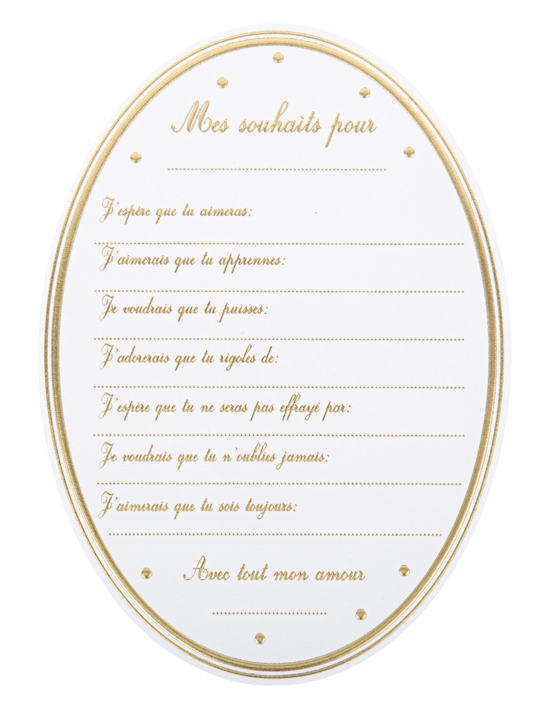 Ez a készlet 8 darabot tartalmaz üdvözlőlapok Fehér és arany mintájukkal ezek a medál alakú kártyák olyan gyengéd mondatok kiegészítésére ösztönzik szeretteidet, mint például: „Bárcsak megtanulnád…” vagy „Bárcsak soha ne felejtenéd el…”. üdvözlőlapok lehetővé teszi, hogy értékes emlékeket őrizzen meg egy babaváró buli vagy hogy megünnepeljük a 1. évforduló a gyermekedről.