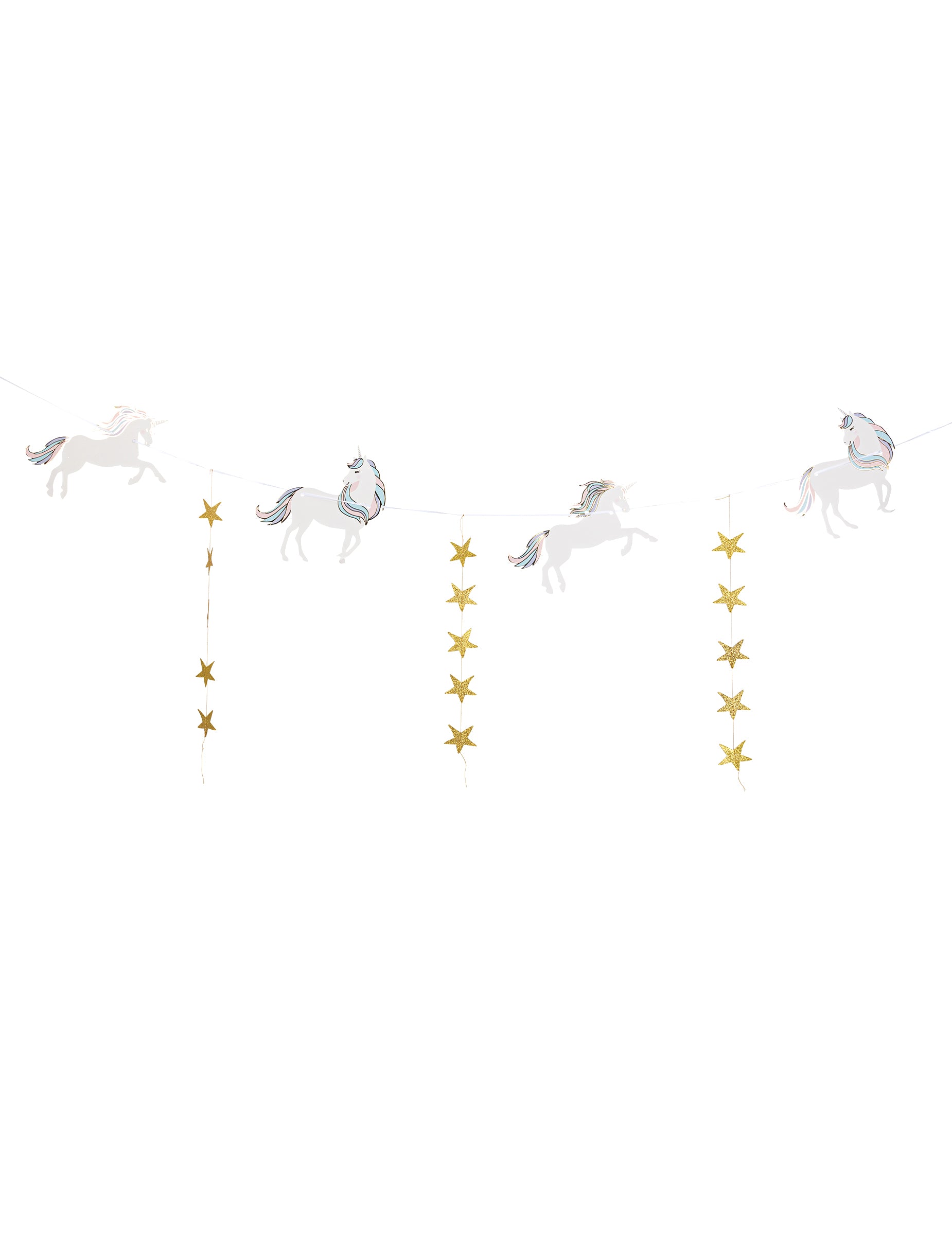 Pasztell unikornis girland arany csillagokkal, 2m, születésnapra