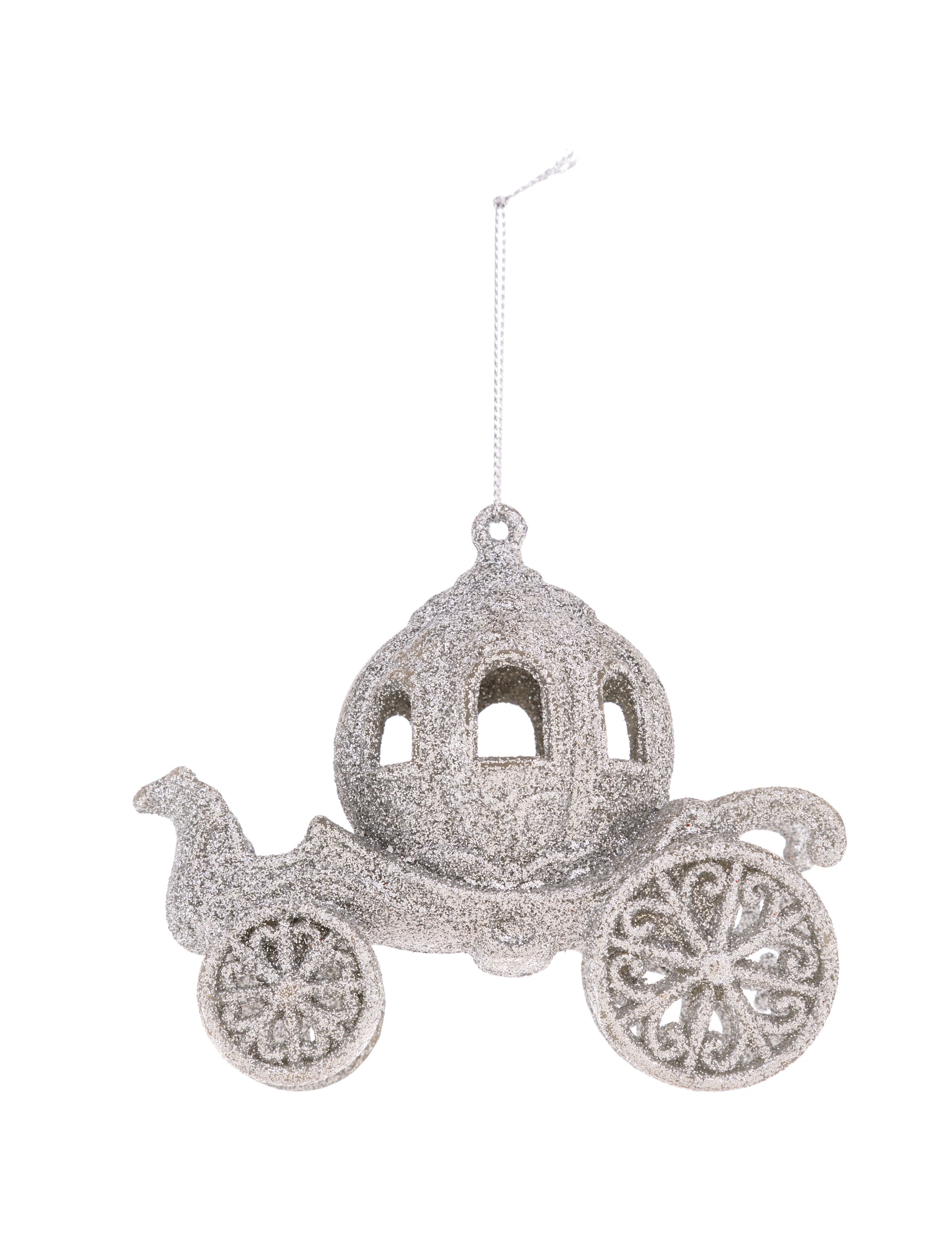 Tündér hintós karácsonyfadísz 11 cm ezüst csillogással