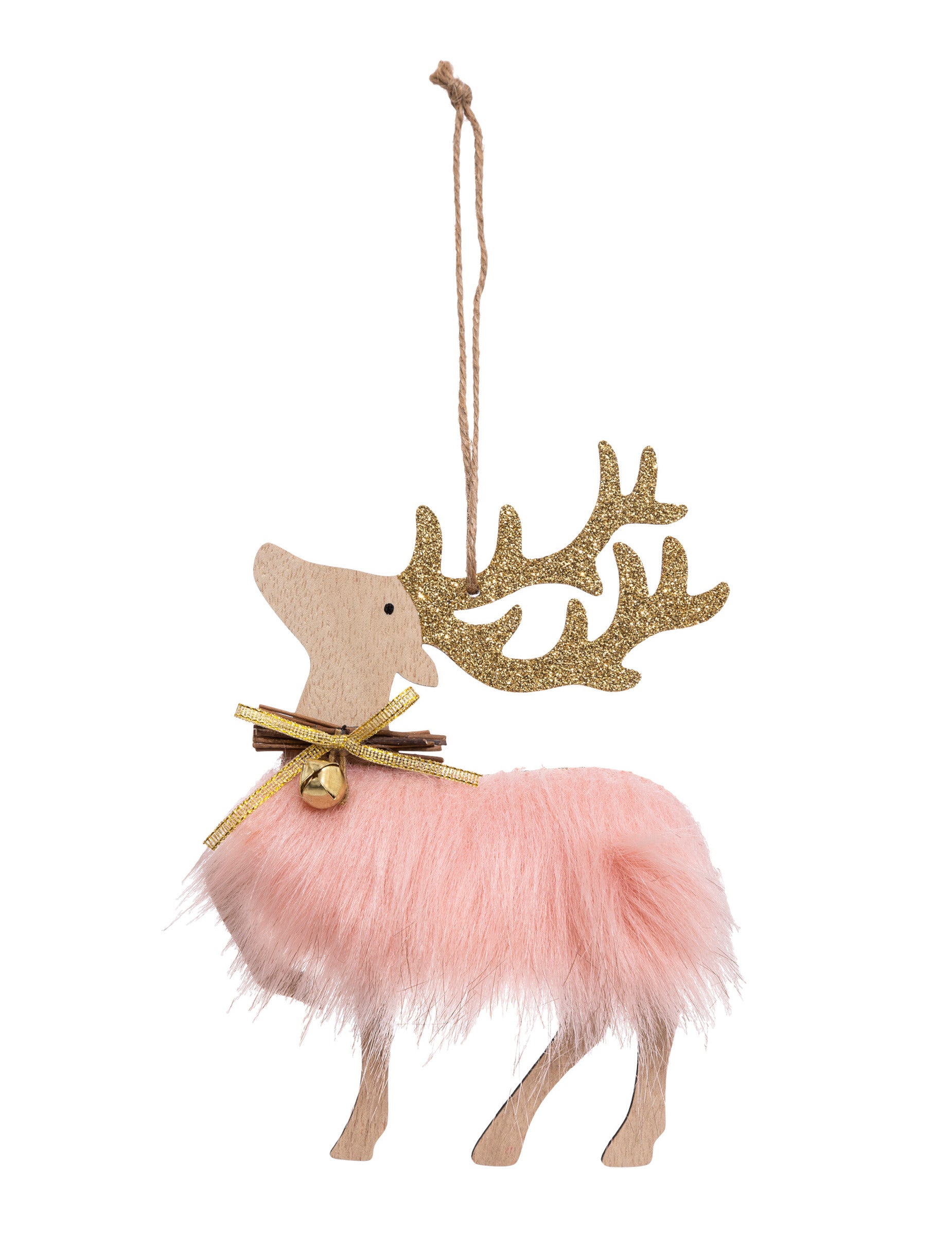 Tündér rénszarvas függőlámpa 17.5 cm rózsaszín csillogó anyagból