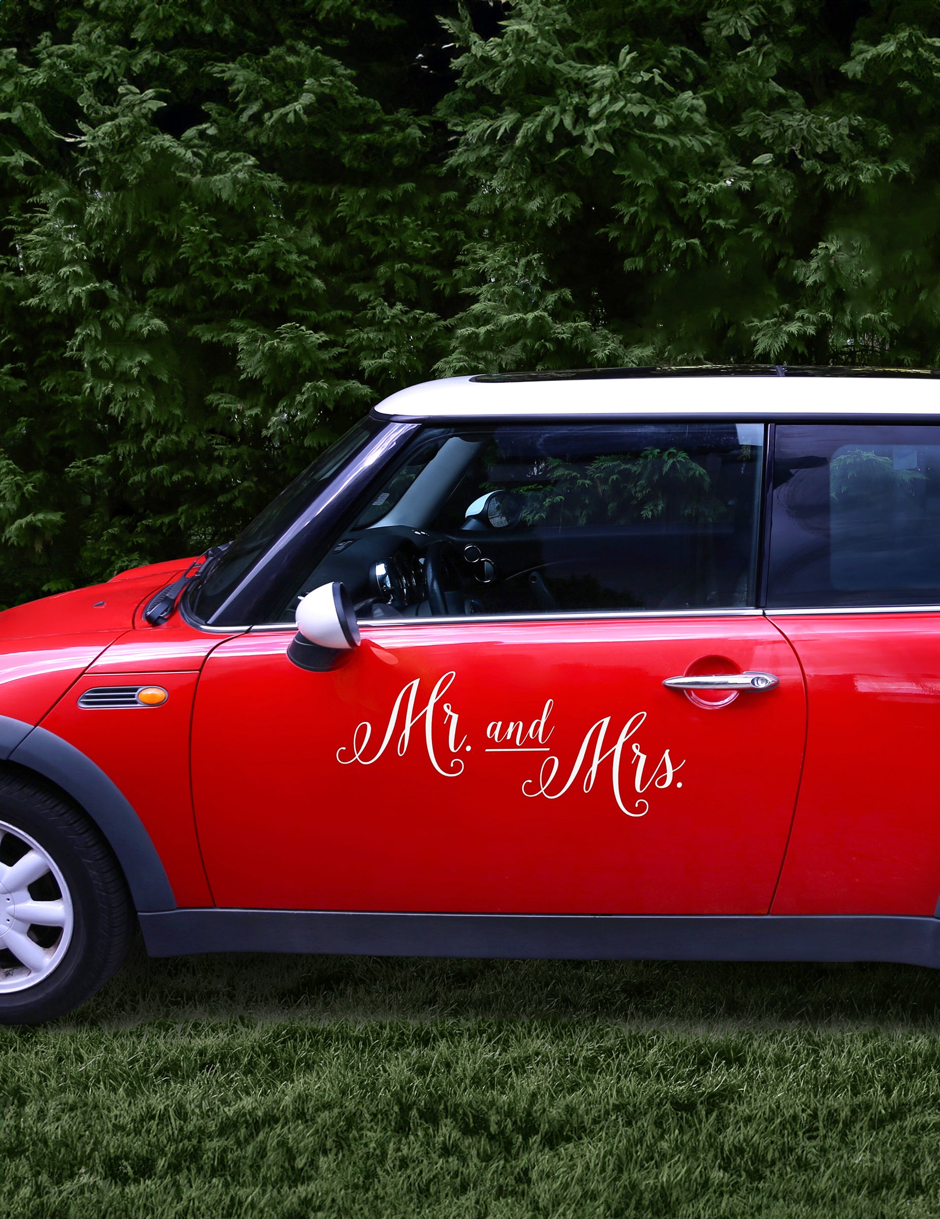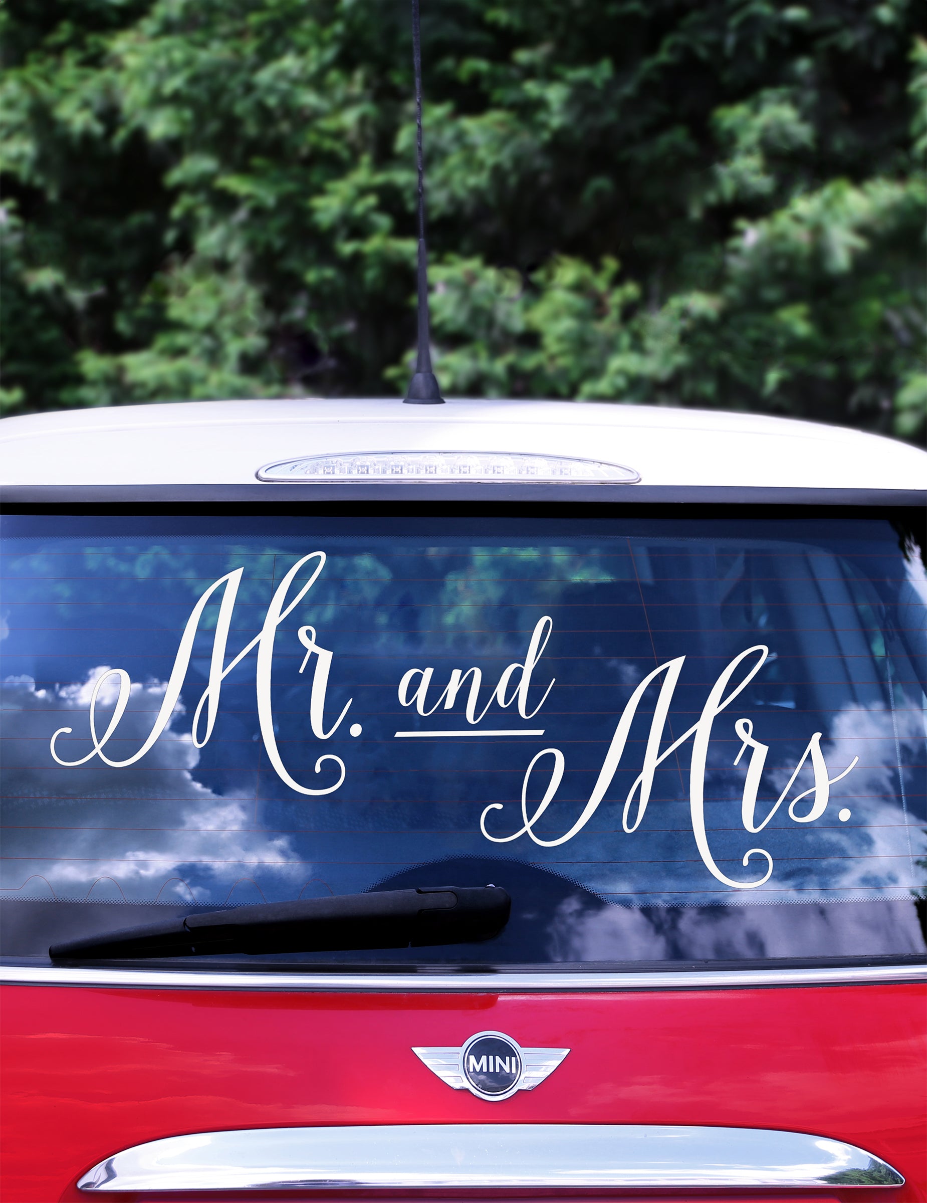 Díszítsd elegánsan az esküvői járművet ezzel a 3 darabos szettel autómatricák fehér. Ez a készlet egy kb. 21 x 26 cm-es „Mr.” matricát tartalmaz. cm, egy 31 x 21 méretű „asszony” matrica cm valamint egy 12 x 15-ös "és" matricát cm. Ezek Mr. és Mrs. matricák ideális kiegészítők a a menyasszony és a vőlegény autója közvetlenül a szertartás után. Egyszerűen rögzítsd őket a hátsó ablakhoz vagy ajtókhoz, majd fejezd be a díszítést tüll vagy szalagok segítségével. autómatrica-készlet romantikus és elegáns hatást kölcsönöz majd otthonodnak házasság.