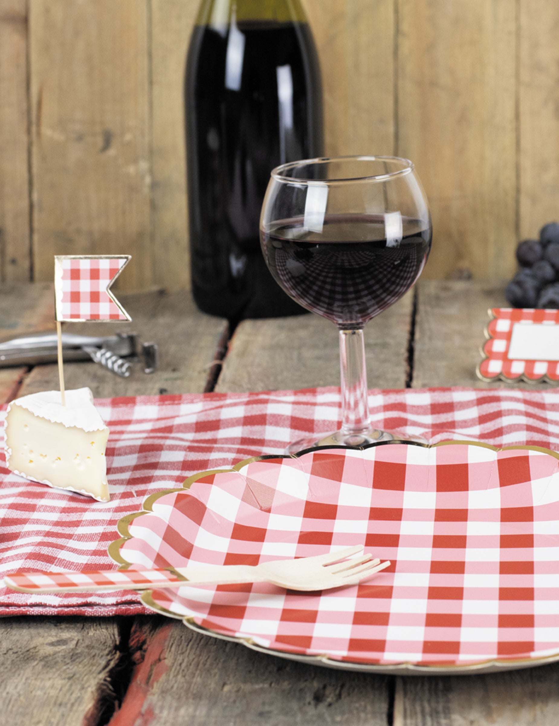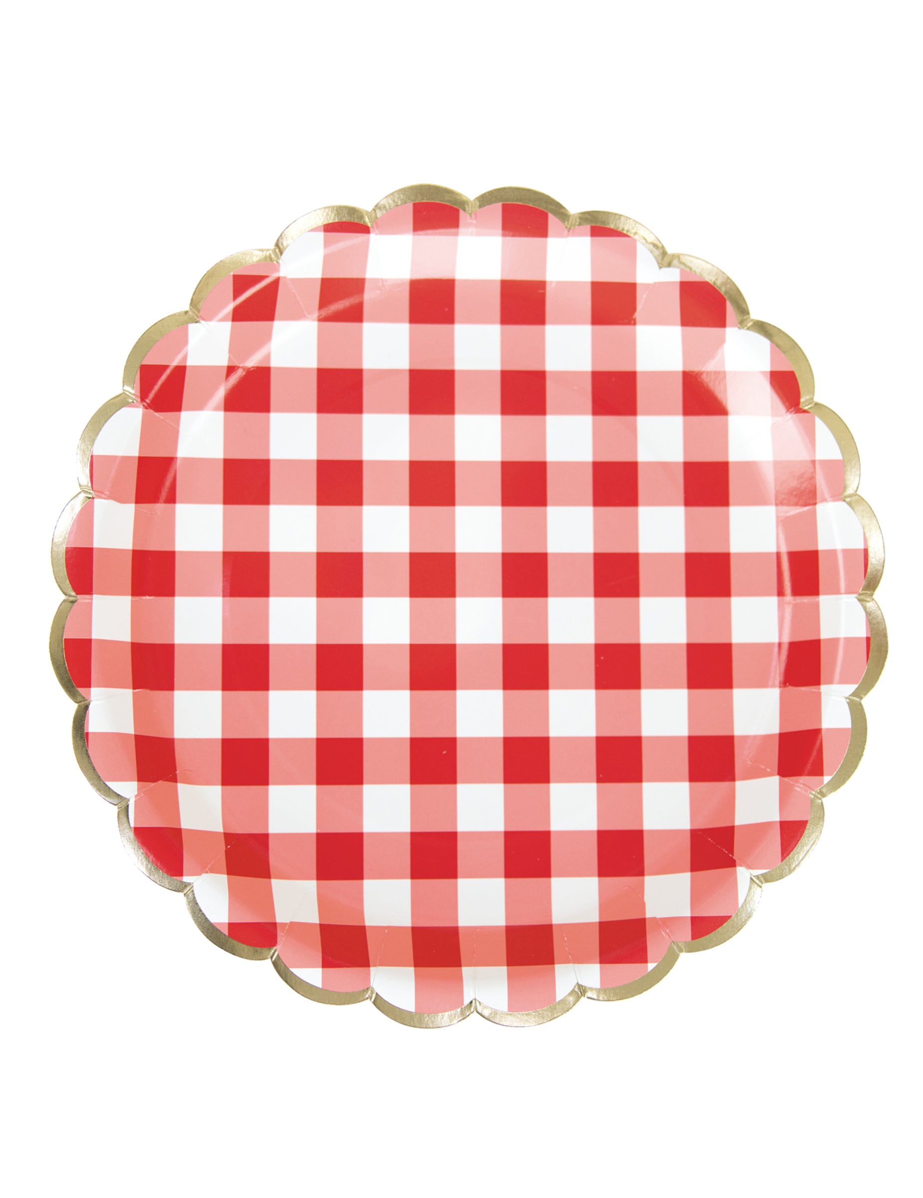 Ez a tétel 8 darabot tartalmaz Vichy-lemezek erős kartonból készült, 23 átmérőjű cm. A híres mintázatot viselve piros és fehér csempékEzeket a modelleket egy nagyon elegáns arany kagylós szegély teszi teljessé. kockás tányérok ideális kiegészítők, amelyek új életet lehelnek beléjük retró stílus rendezvényeire, legyen szó akár buliról, akár guiguette téma vagy egy rusztikus stílusú esküvőHarmonikus asztalterítéshez ne habozzon kombinálni őket természetes elemekkel, például fával vagy zsákvászonnal.