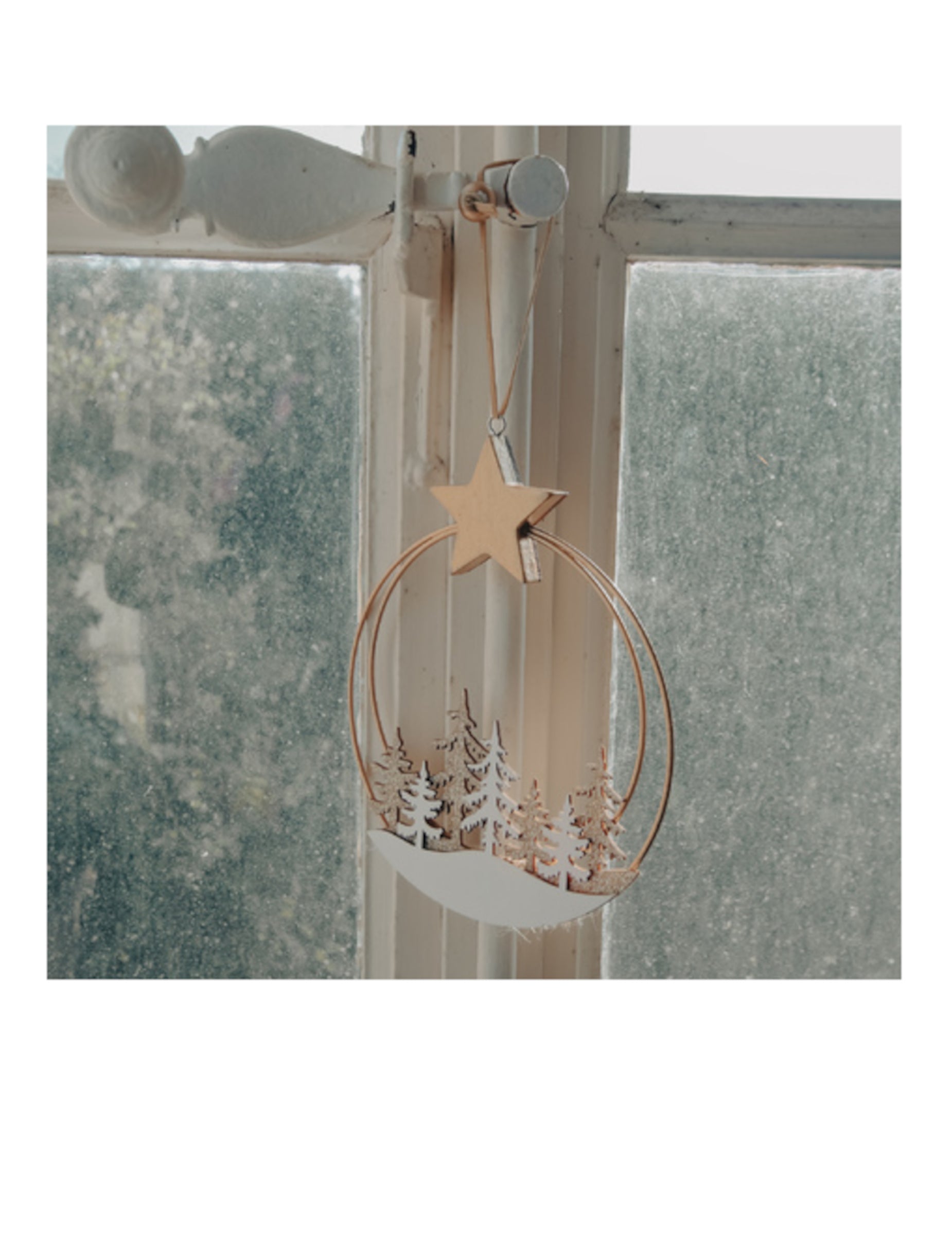 Havas erdő függő kör 16,5 x 19,5 cm arany csillaggal