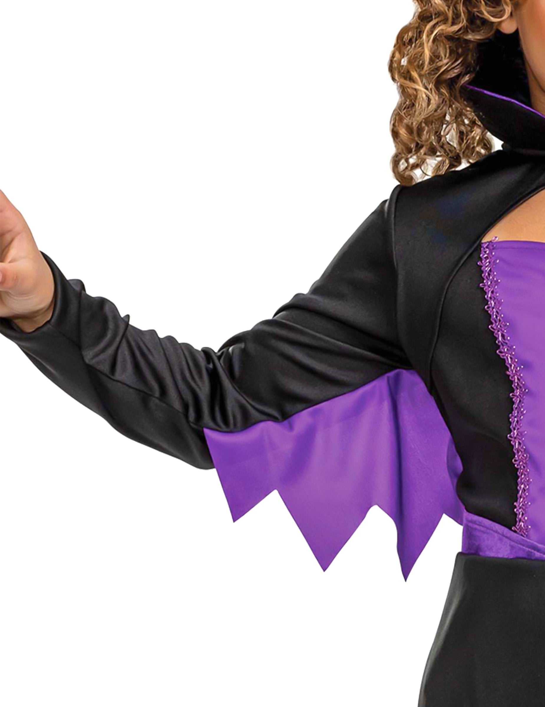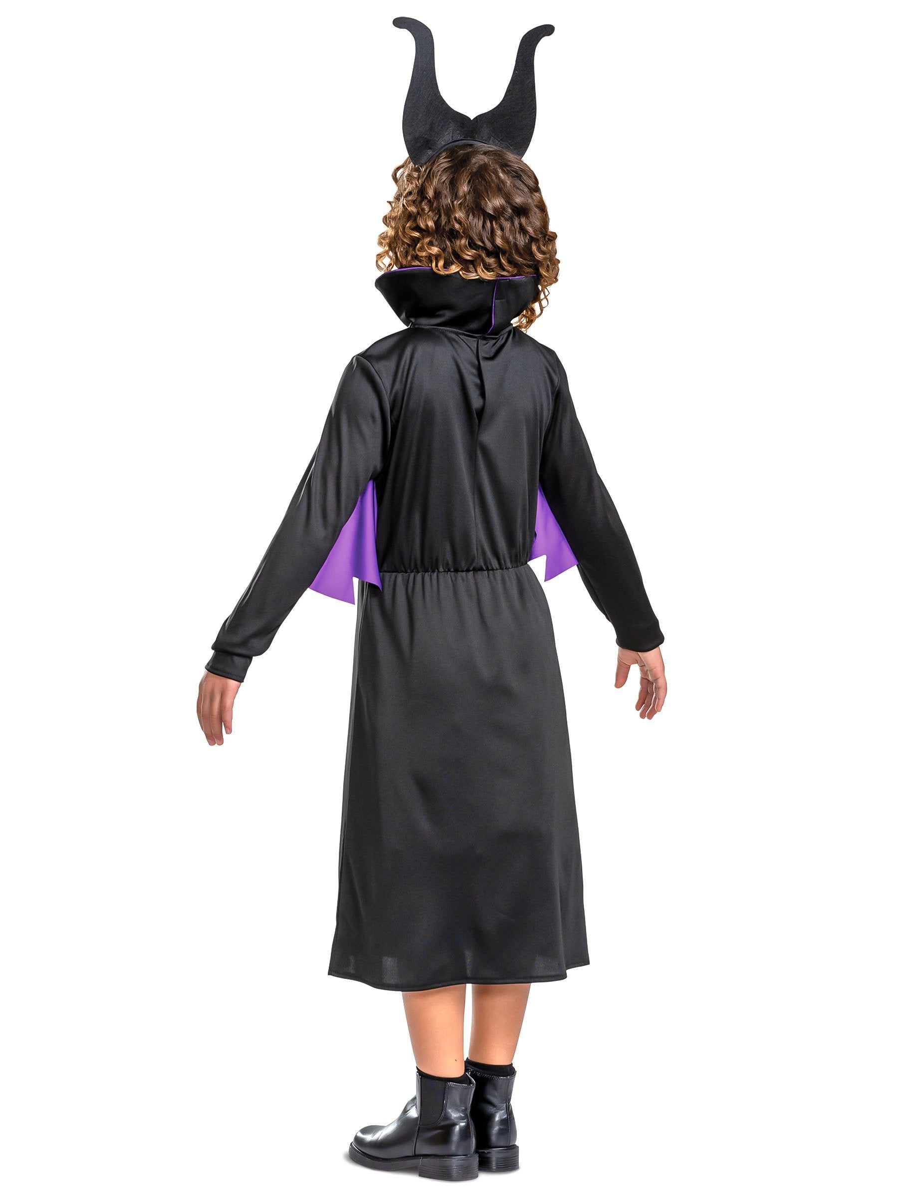 Ez a lányok számára ez a gonosz álruhát hivatalos Disney engedély alá tartozik. Ruhából és fejpántból áll. A ruha fekete és lila, fogazott szárnyakkal varrva. A hasítás szempontjából egy kicsi, gonosz drágakő lesz díszítve az egészet. A felső, hasonló a fűzőhöz, kicsi lila varratokkal díszítve, amelyek gazdagítják ezt a jelmezt. A jobb és az egyenes fekete gallér még rosszabb megjelenést kölcsönöz ennek a ruhának. A fejpánt fekete és a Maleficent karakter szarvát képviseli. Ehhez a karneválhoz vagy Halloweenhez a gonosz karakterét testesítse meg ezzel a Disney jelmezkel a Girl számára!