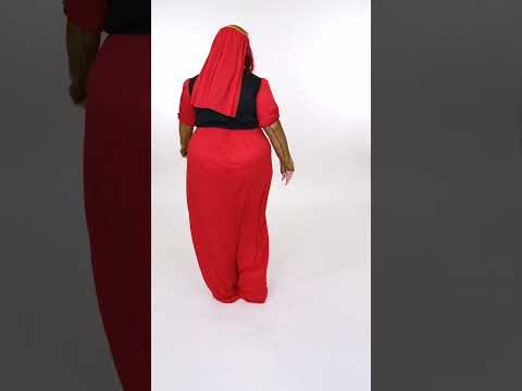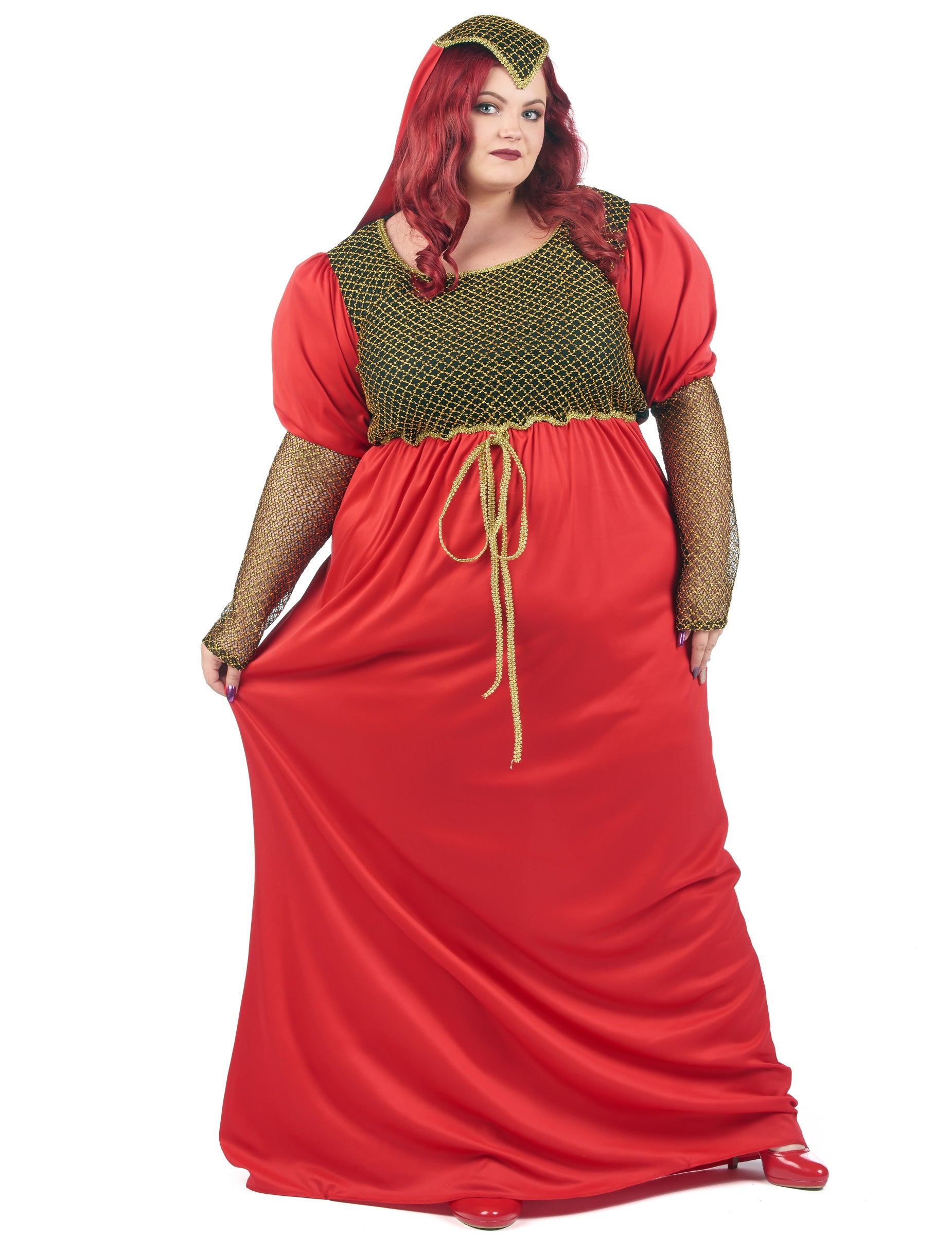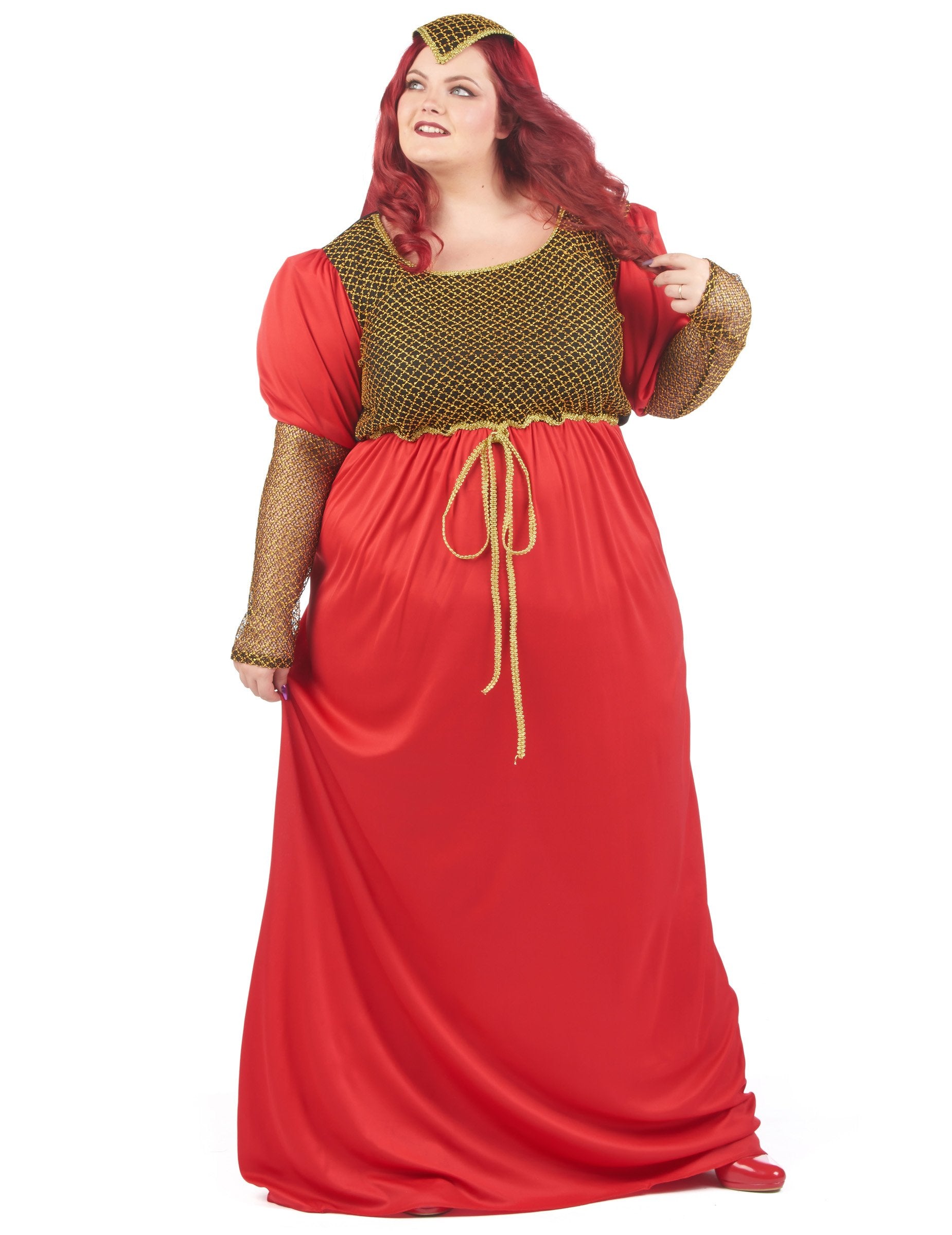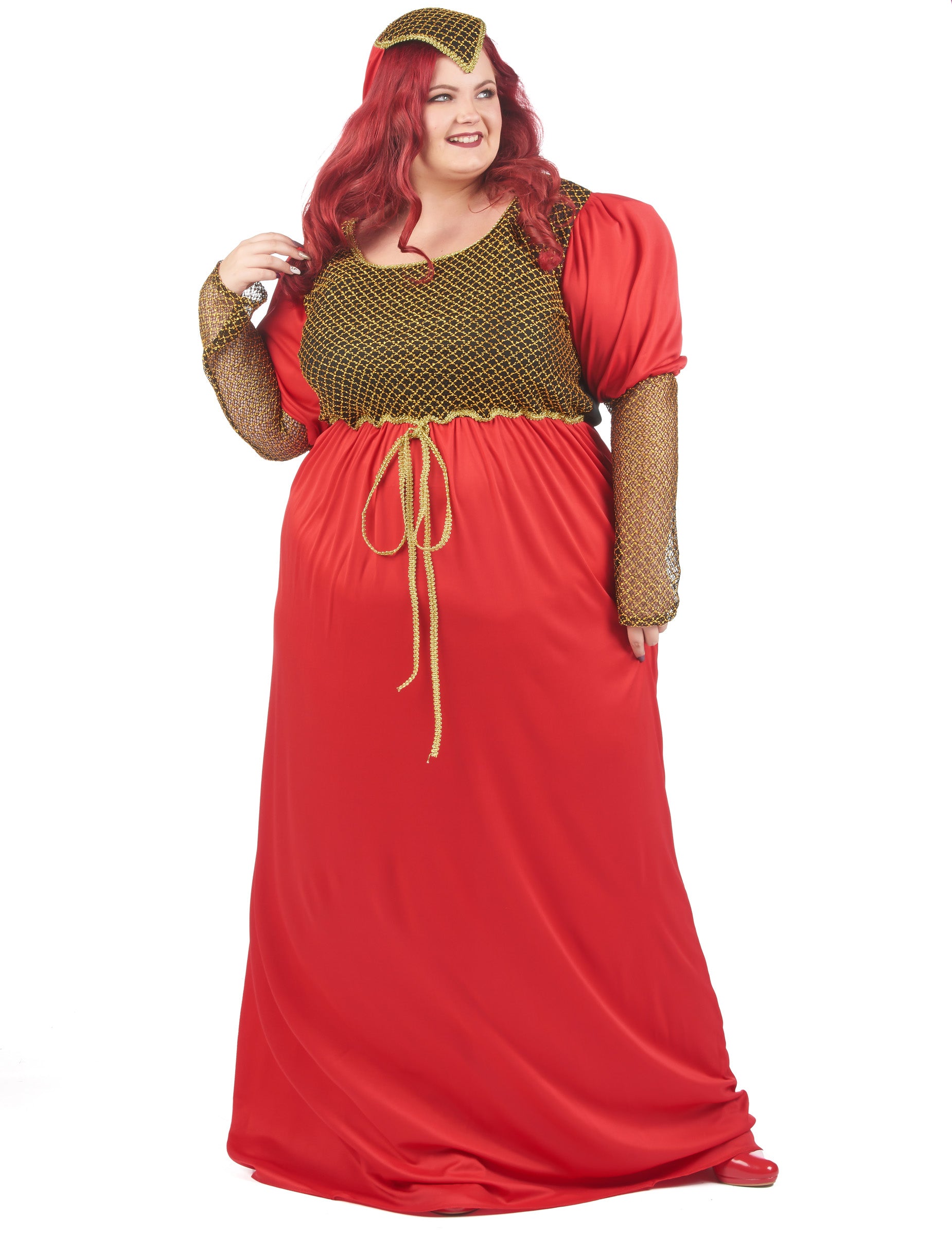 Ez Nagy méretű piros középkori jelmez erre való nőkEgy ruhából és egy fejdíszből áll.