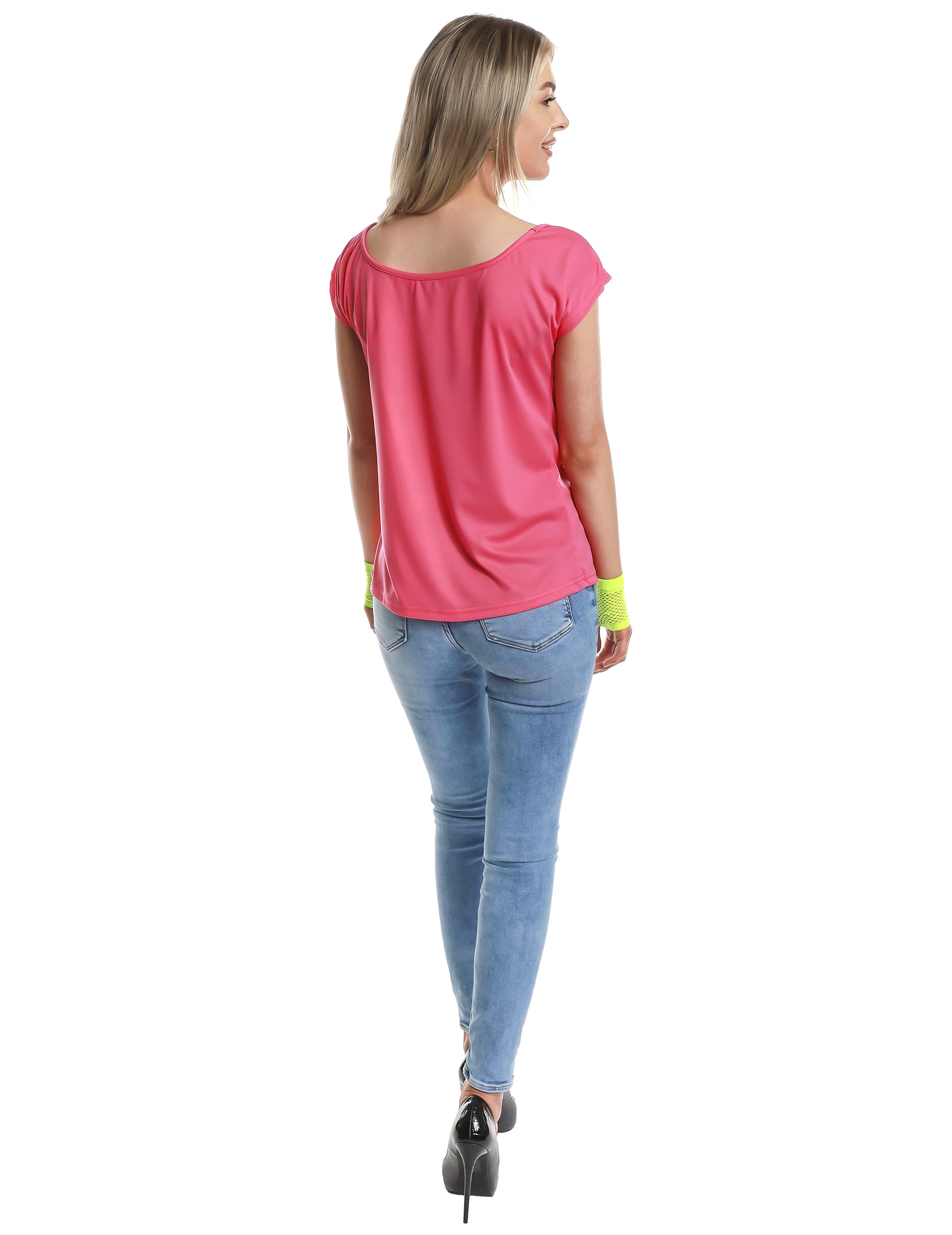 Ez a póló "Szeretem a 90" S "-et a nők számára. A póló fluoreszkáló rózsaszín, sárga, lila és zöld mintákkal, és a" I Love the 90-es évek "felirat. Ez a póló ideális lesz Fluoreszkáló párt vagy párt a 90 -es évek témájáról!