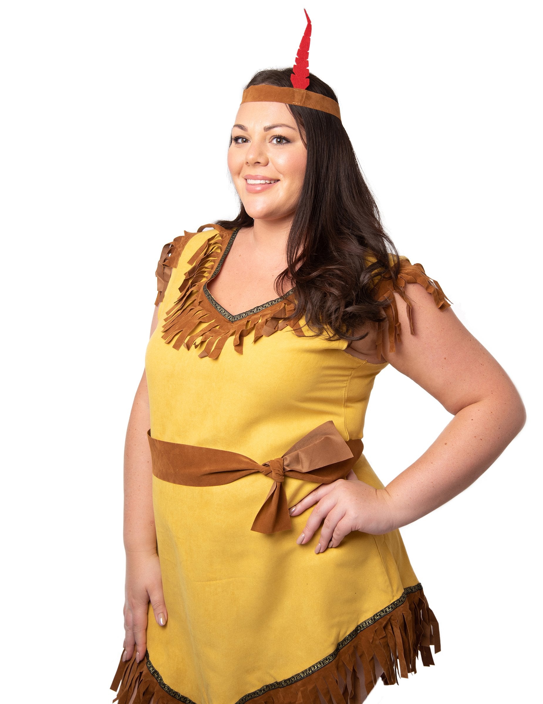 Ez a nagy, nagy aszimmetrikus indiai álruhák a nők számára készültek. Ruhából, övből és egy fejpántból áll. A jelmezruhát bézs/világosbarna színű, kellemes velúr tapintással. A aszimmetrikus vágás az első alsó rész szintjén jellemzi. Ez magában foglalja az alján lévő barna rojtokat, a vállakat és a nyakkivágást. A barna öv tökéletesen illeszkedik a jelmezhez a sziluettjéhez. Végül egy fejpánt áll rendelkezésre, szintén barna színű, toll kíséretében. Ez az álruhás tökéletes lesz az indiánok témájára, mint a karneválra vagy az új évre!