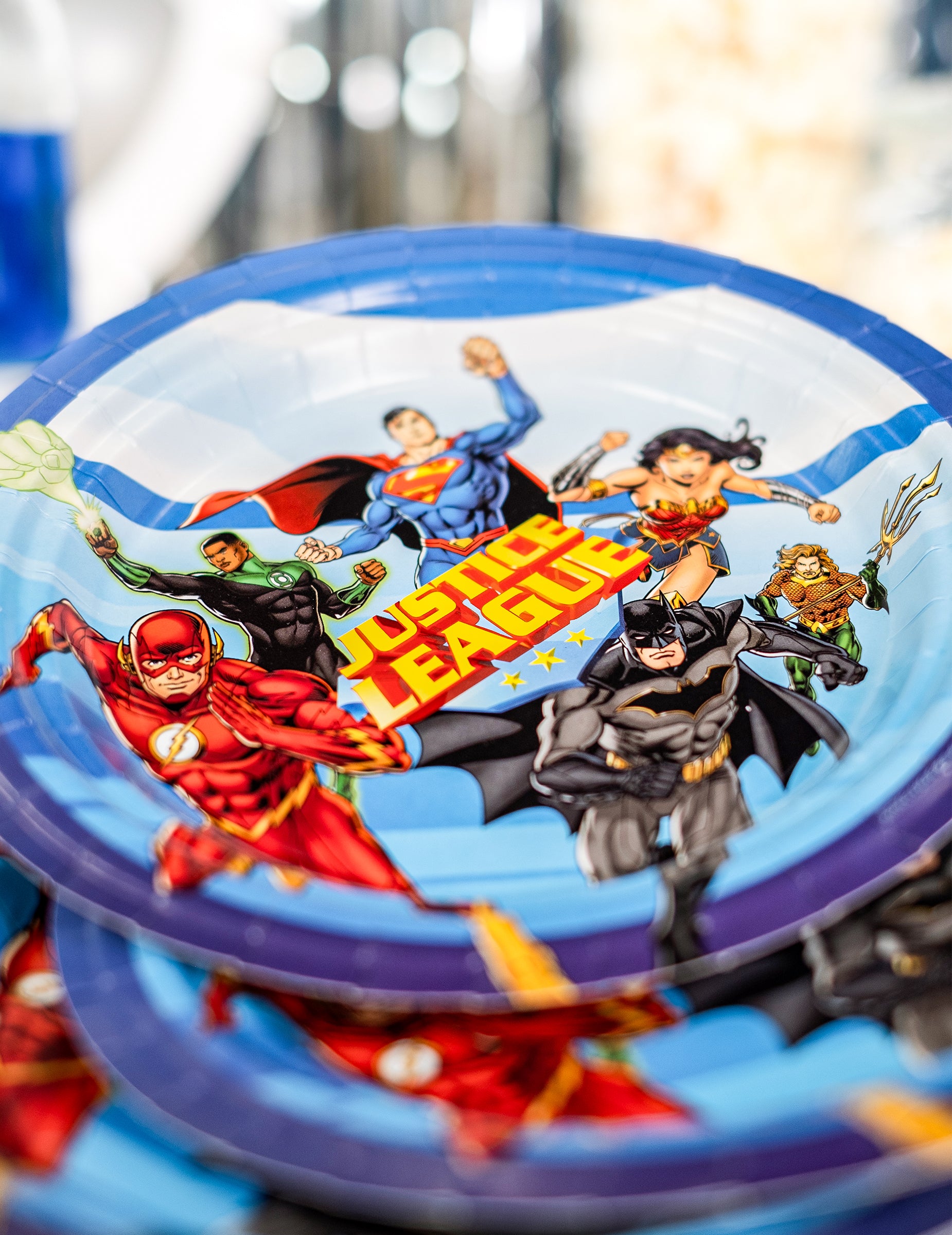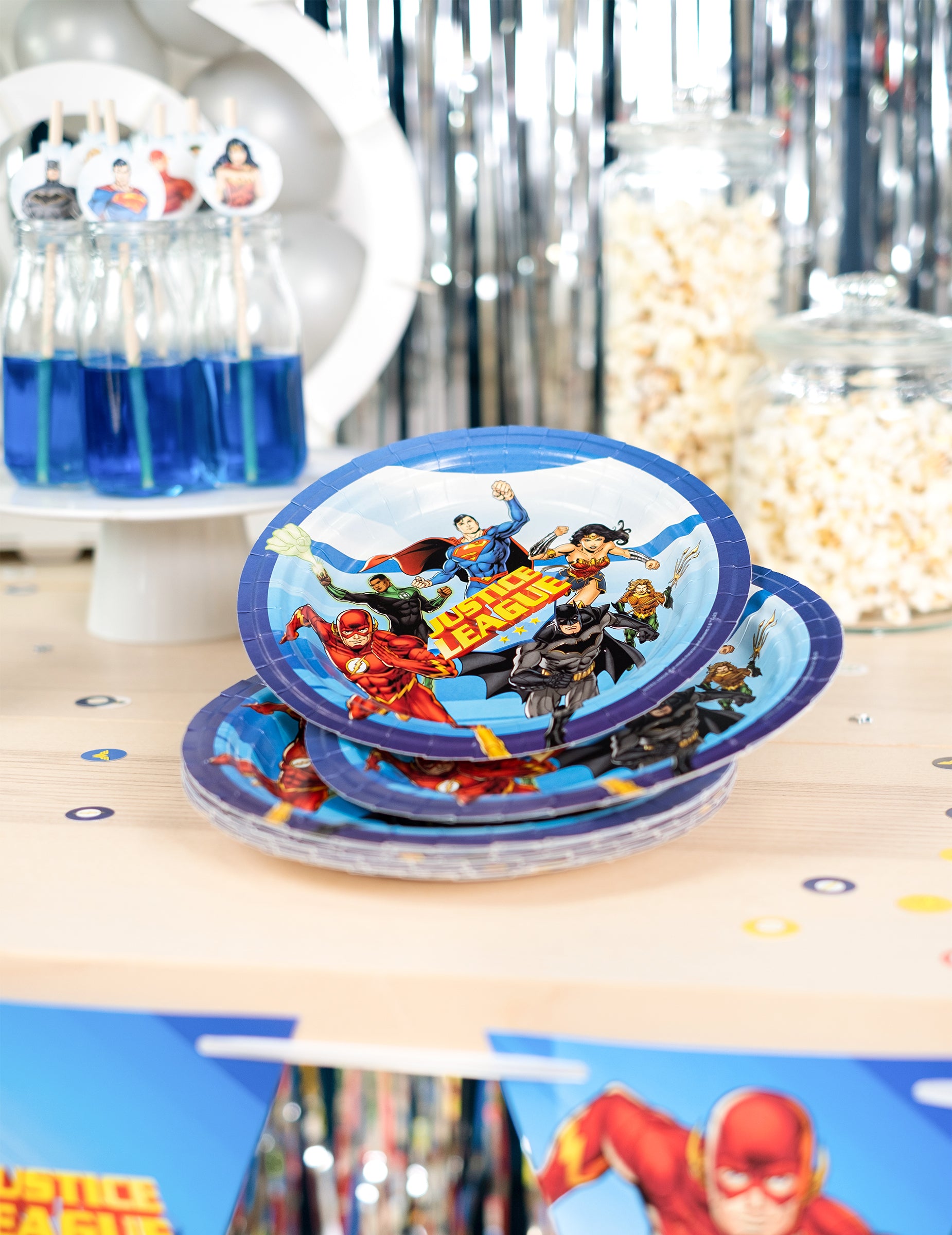 Ez a tétel 8 lemezt tartalmaz a hivatalos igazságügyi bajnoki engedély alapján. Körülbelül 23 cm átmérőjűek és kartonból készülnek. Kék hangon vannak, és az Igazságügyi League logóval díszítik. Megtalálja a film szereplőit is, mint a Batman, a Superman, a Flash, a Wonder Woman és a Cyborg. Adja hozzá a többi terméket ugyanabból a tartományból, hogy teljes asztal legyen! Ezek a lemezek ideálisak egy 100% DC képregény asztalhoz!