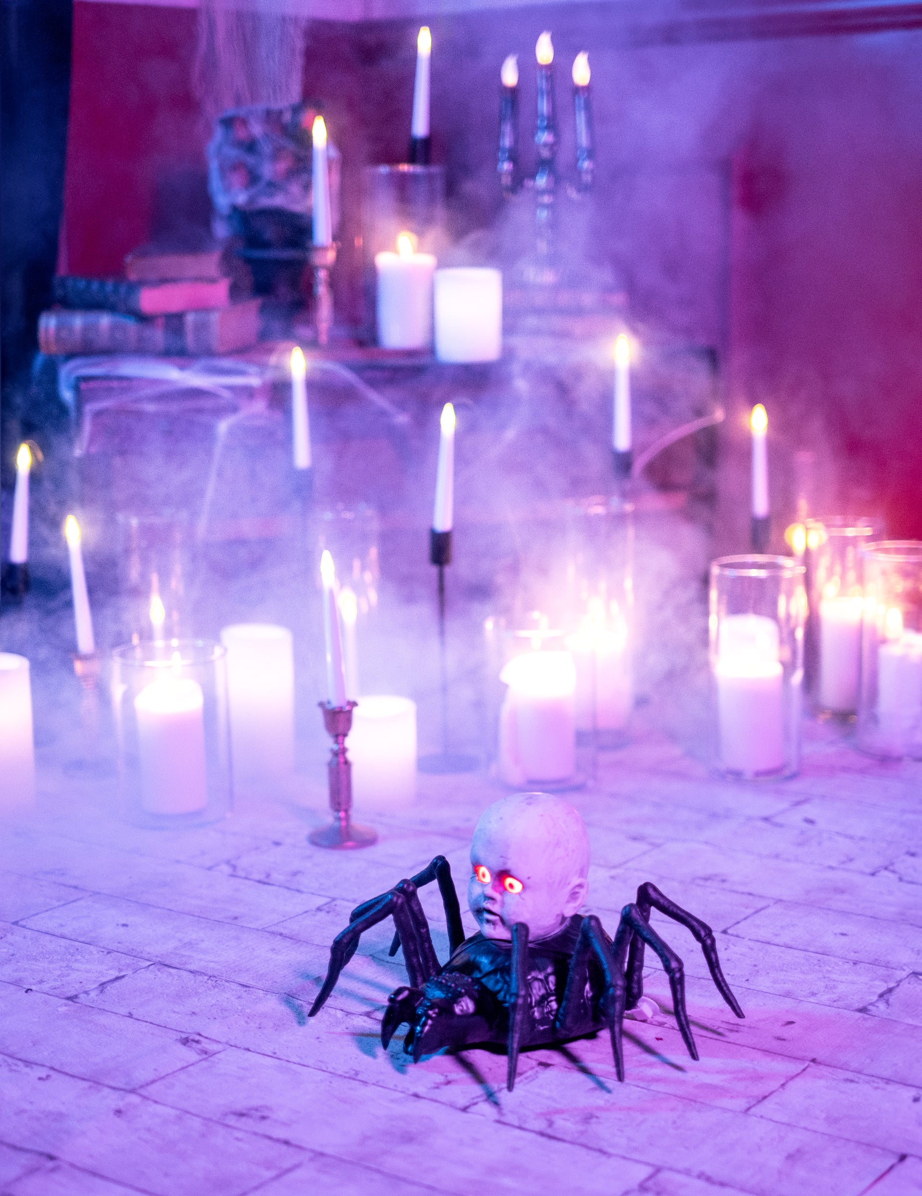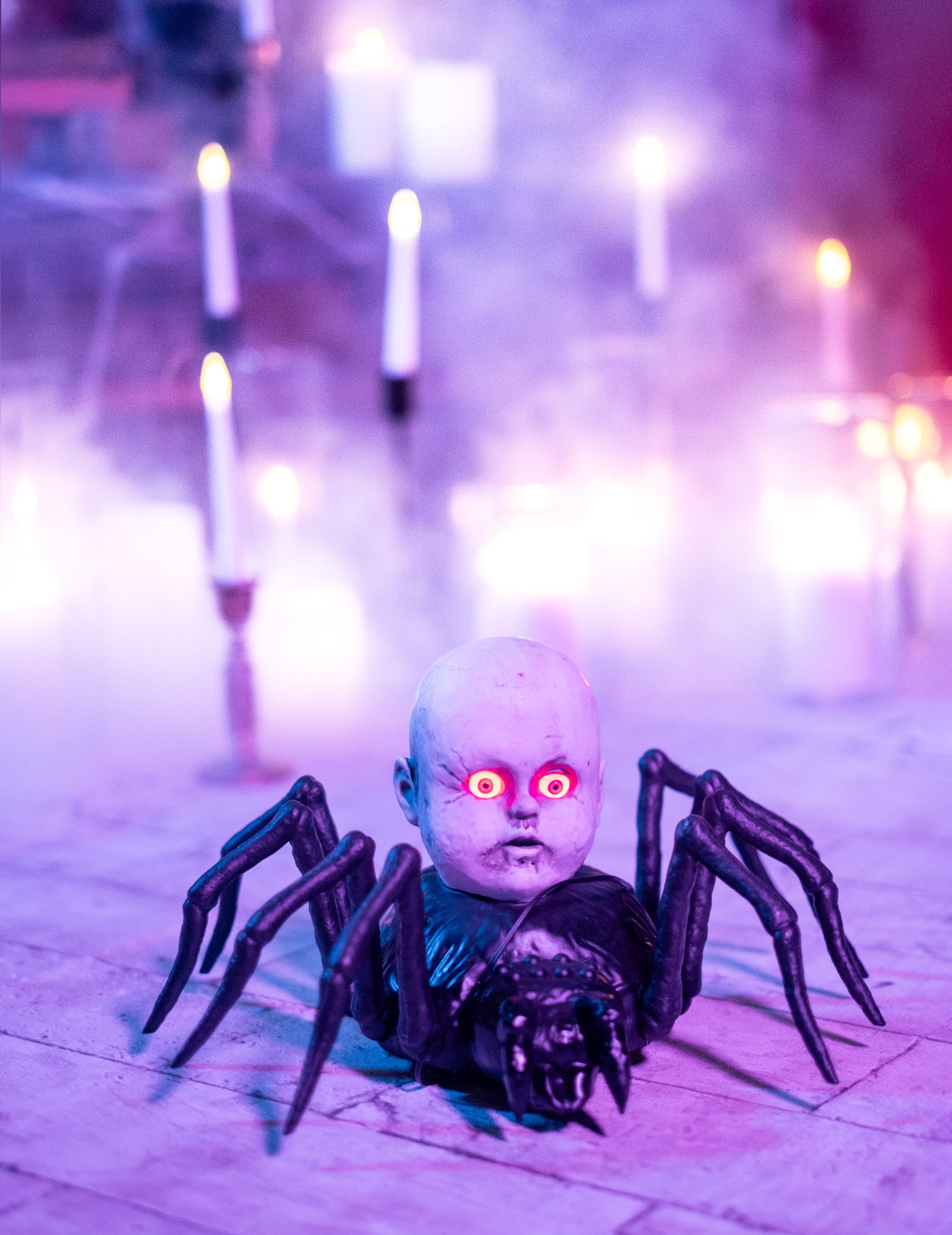 A pókbaba mozogni kezd, amikor hangos zajt érzékel a közelben (például tapsot), és megkezdődik a mechanikus működés! Fényeffektusok kíséretében, beleértve a vörös szemeit is, mozogni fog a szobádban, miközben rémisztő sikolyokat hallat!