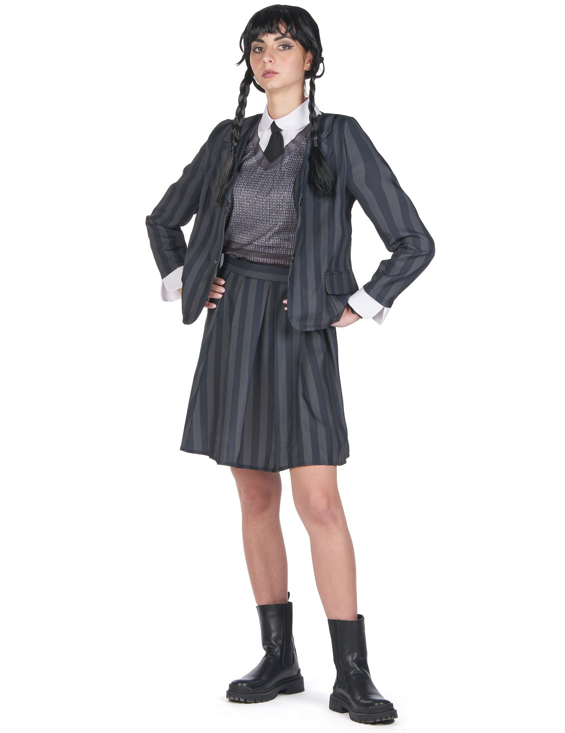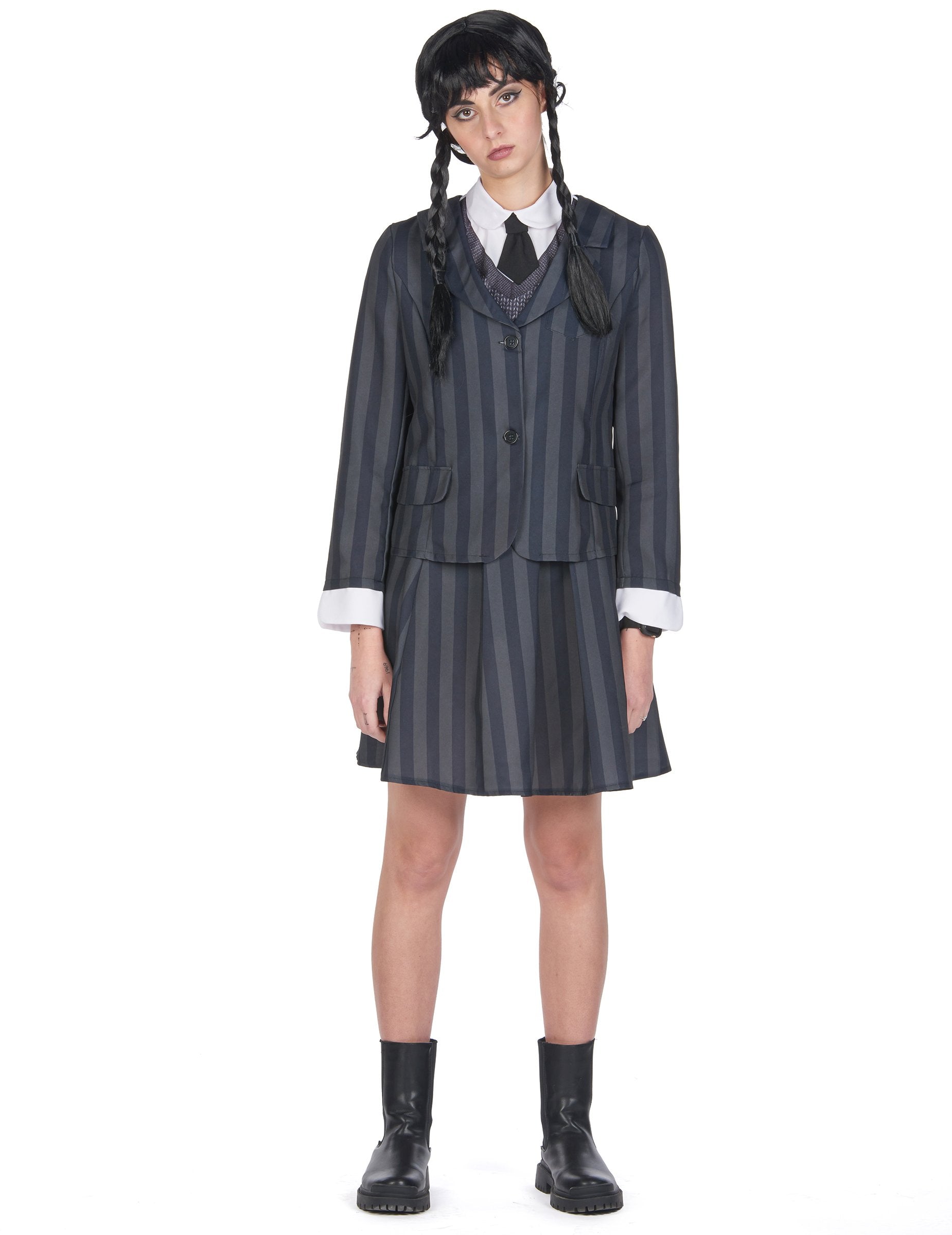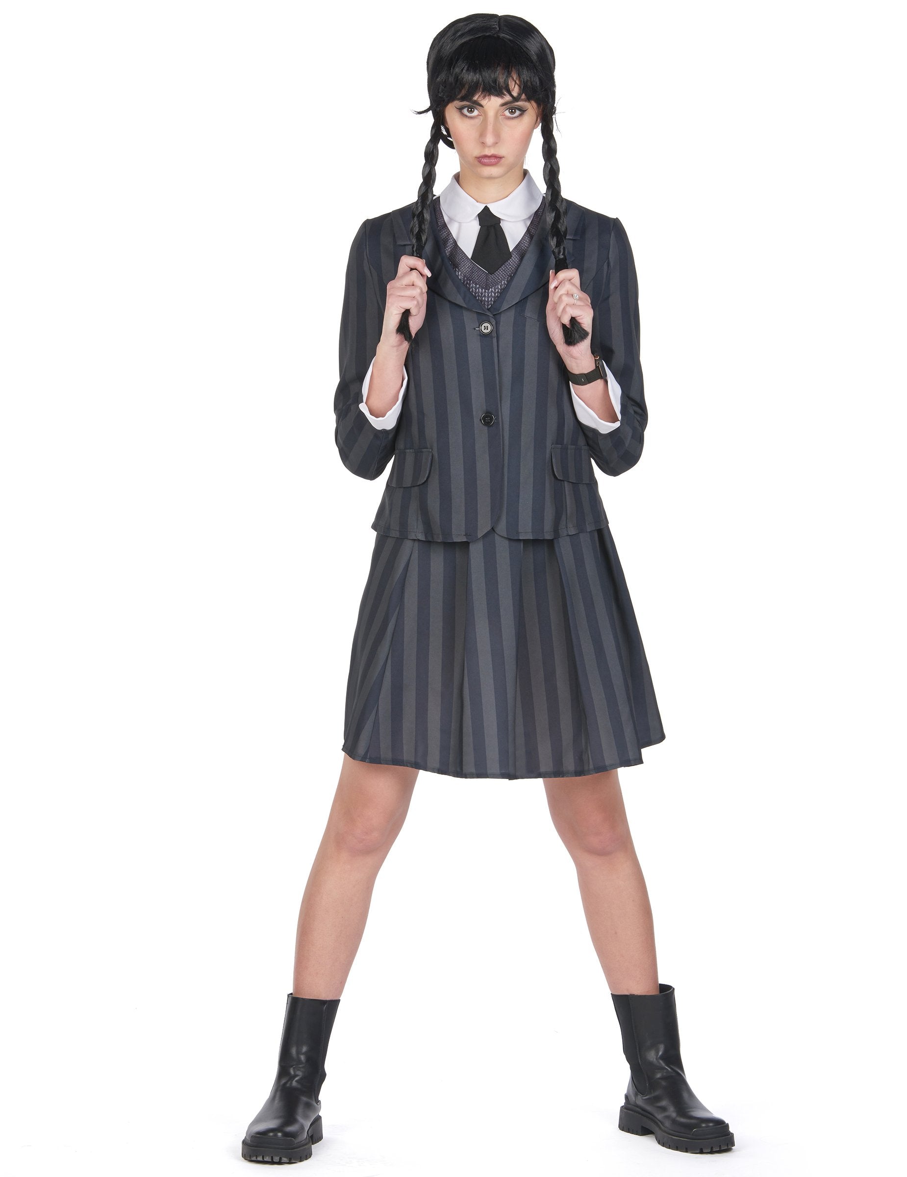 Ez az egységes gótikus iskola álruhája a nők számára készült, és magában foglalja a kabátot, a magas és a szoknyát. A kabát sötétszürke hangon van, hosszú ujjú. A praktikusság érdekében bezárul egy gomb bezárásával. A teteje egy szürke mellény, amelyet ing és nyakkendővel készít (nem tartozik). A szoknya közepes hosszúságú és térd fölé érkezik. Töltse ki ezt a jelmezt egy zsinór parókához és csizmához az igazán gótikus megjelenés érdekében. Tökéletes egy estére a barátaiddal Halloween alatt!