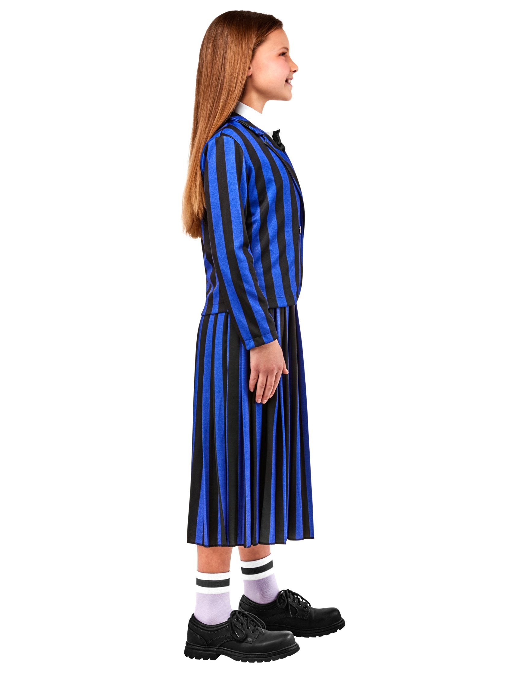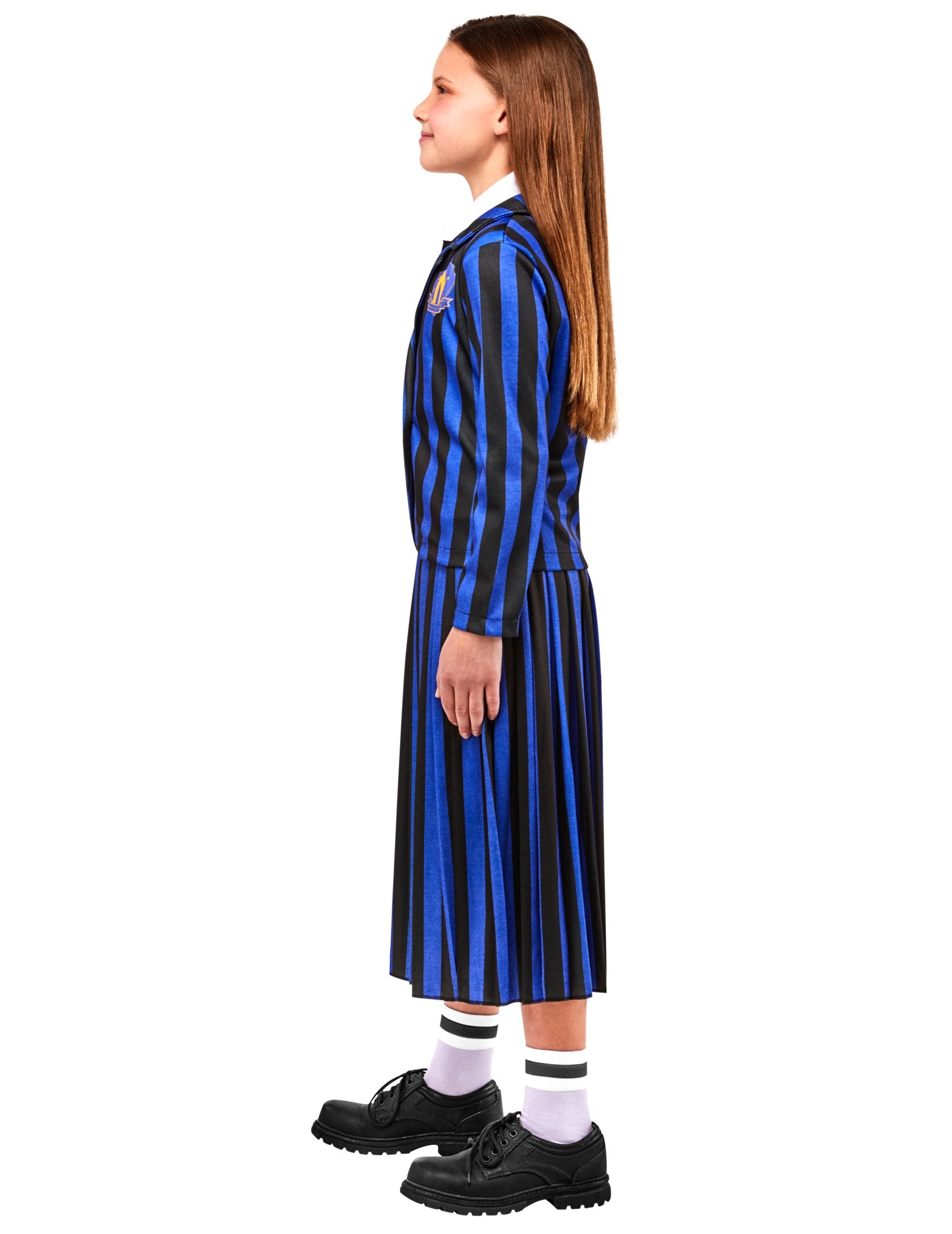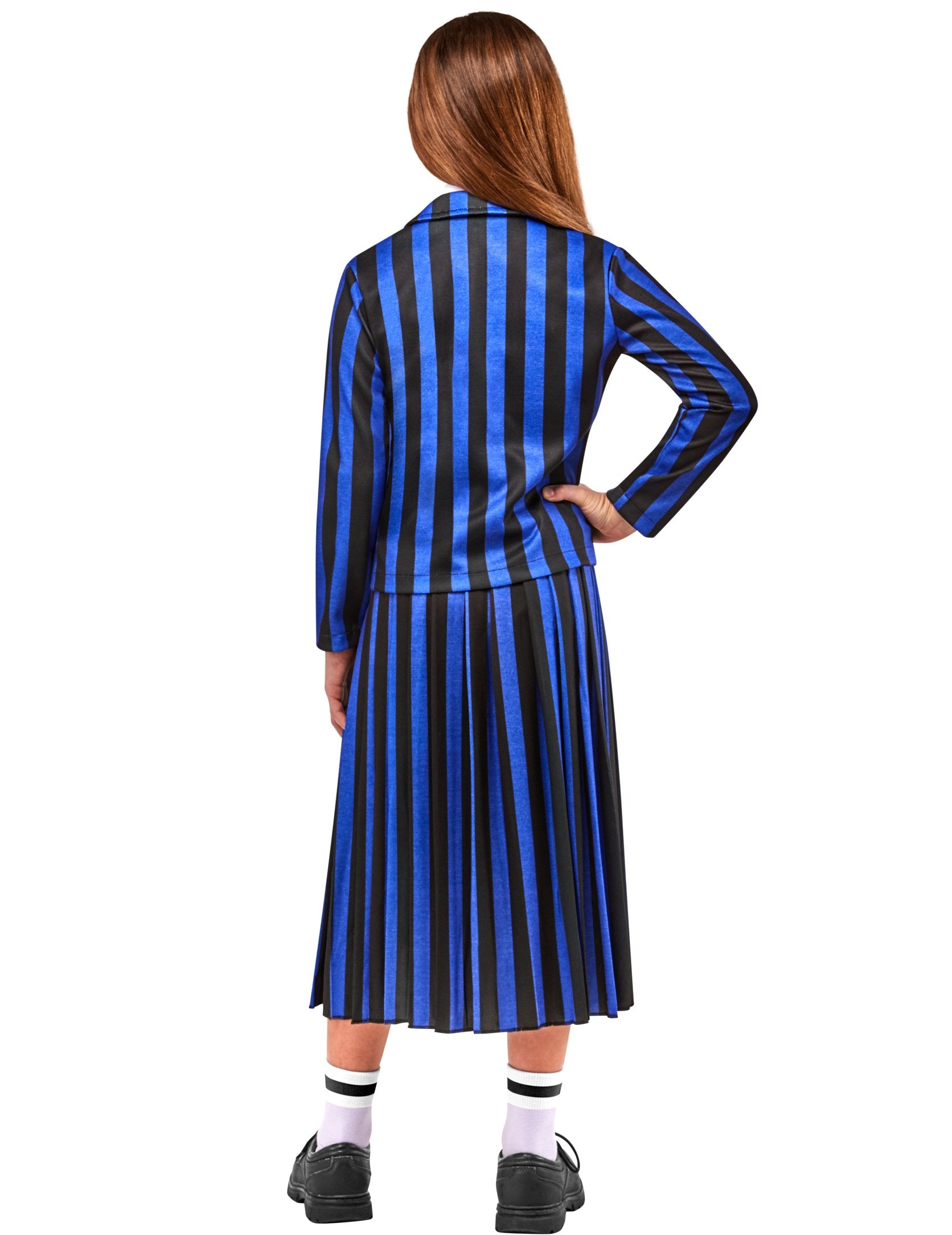 Ez az egységes iskola inid álruhája gyermekeknek szól. Tartalmaz egy kabátot, egy felső és egy szoknyát. Ez a hihetetlen inid, a szerda Addams kedves barátja. A hosszú lélű dzseki kék és fekete hangon van. A kis fekete gombnak köszönhetően gyorsan és egyszerűen bezárhatja a kabátot. A felejthetetlen Nevermore Akadémia Iskola logója az eredeti érintéssel jár a kabátnak. A teteje lila hangon van, fekete -fehér csíkokkal díszítve. A szoknya hosszú és ugyanolyan színű, mint a kabát. Az egész rugalmas és rugalmas anyagban van a praktikus és kényelem érdekében. Adjon hozzá egy gyönyörű parókát, hogy utánozza a csinos Enid hajat, és váljon a Nevermore Akadémia hallgatójává! Ez az Enid School egyenruhája tökéletes a karneválhoz vagy a Halloweenhez!