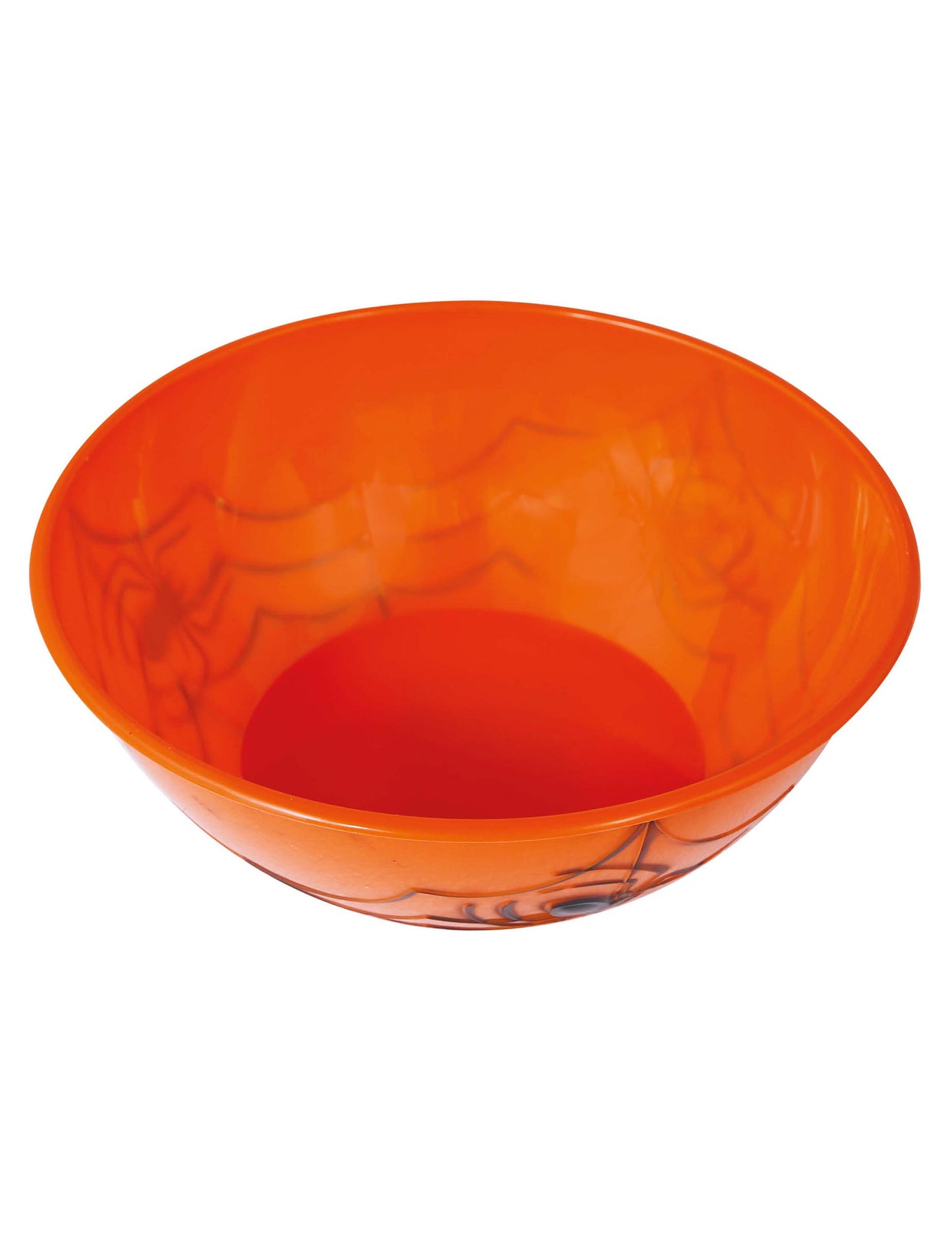 Ez a cukorka tál műanyag és narancssárga színű. A pókvászon szélein díszítik. Helyezhet édességet, csokoládét vagy chipset. Ez a tál tökéletes az asztal díszítéséhez Halloween alatt!