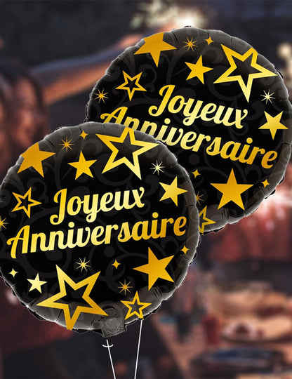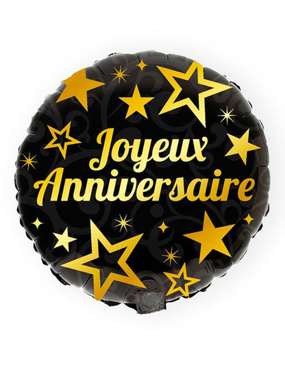 Ez a dekoráció alumíniumgolyót képvisel. Körülbelül 35 cm átmérőjű méréssel összességében arany és fekete színű. A csillagok alakú minták, valamint a "Boldog születésnapot" felirat díszíti. Ez a labda tökéletes lesz a belső terek díszítéséhez egy születésnap alkalmával!