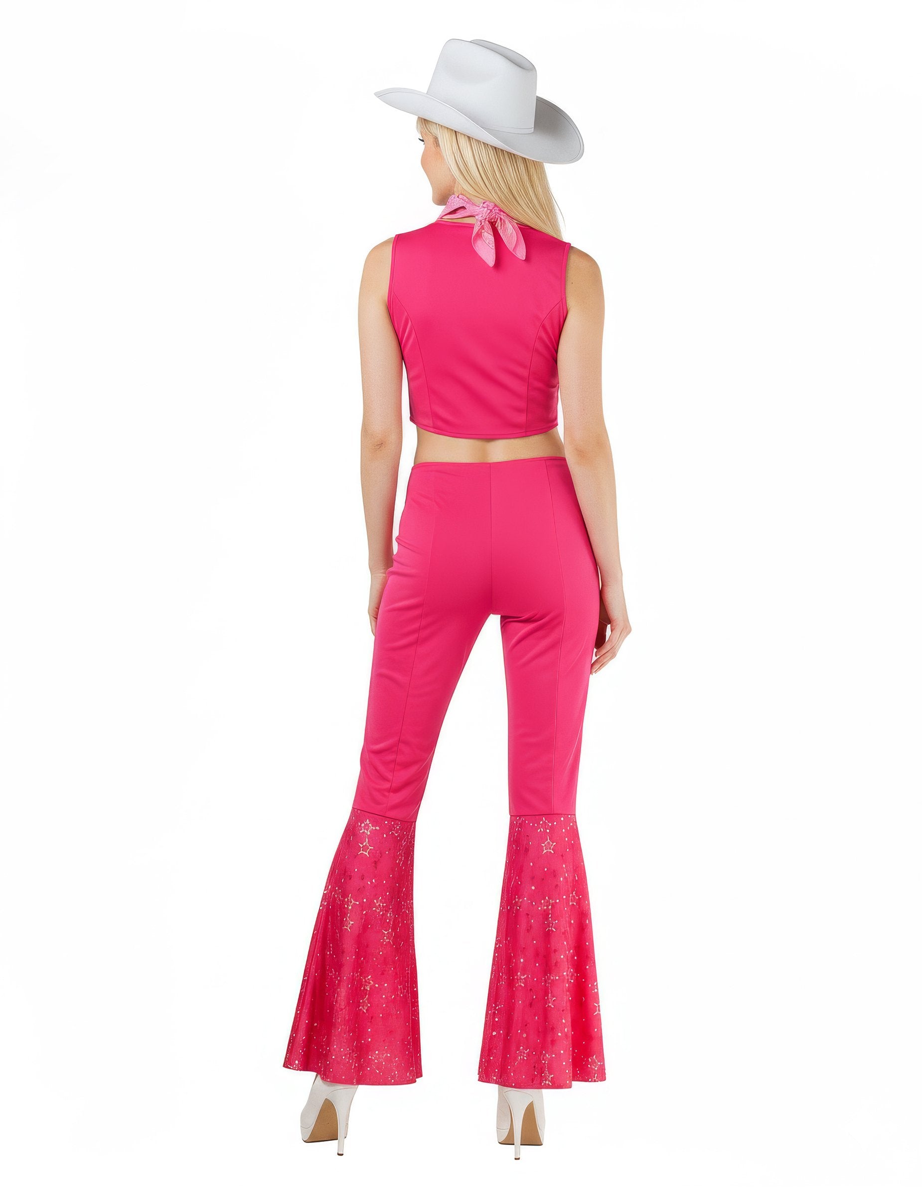 Ez a teljes szexi rózsaszín cowboy jelmez a nők számára készült. Kalapból, bandanából, felső és nadrágból áll. A teteje élénk rózsaszín színű. A nadrág ugyanolyan színű, mint a teteje, szoros a combokon és a térdszinten. A bandana rózsaszínű, fehér mintákkal. A cowboy kalap fehér, rózsaszín szalaggal. Legyen a Far West Queen ezzel a rózsaszín cowgirl jelmezkel, amely ideális lesz egy nyugati esti vagy más álcázott eseményekhez!