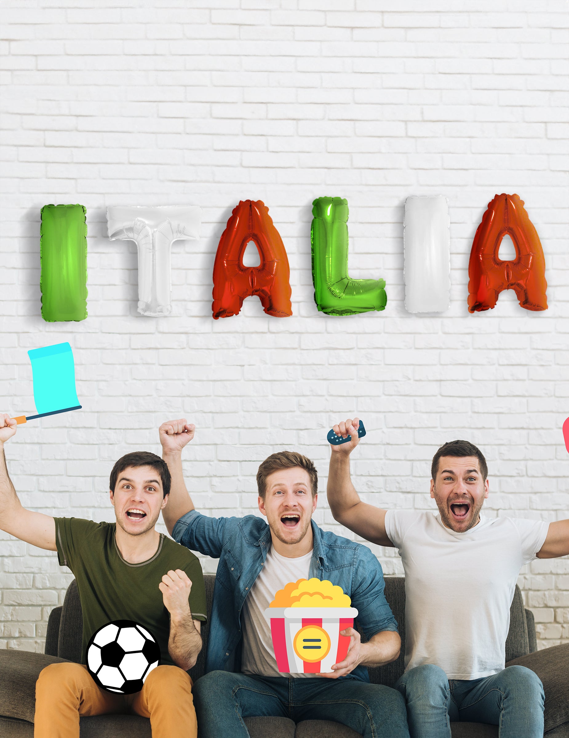 Ez a tétel 6 léggömbből áll, amelyek mindegyike kb. 40 cm. Az olasz zászló színeiben a léggömbök alkotják az "Italia" nevet. Töltse ki a szoba dekorációját, hogy támogassa a századot Azzura -t olyan sportesemények során, mint a Világkupa!