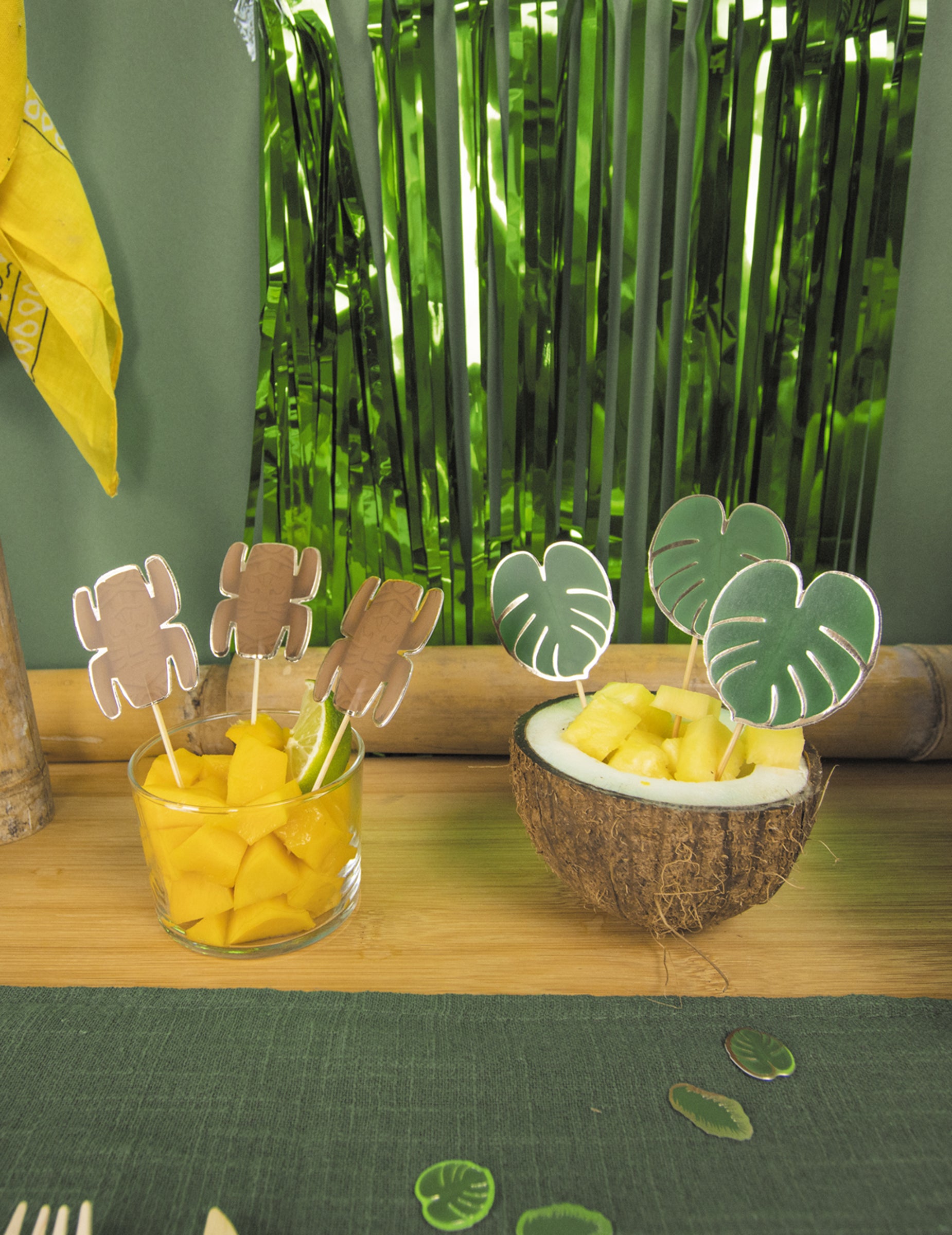 Ezeket a totem csúcsokat 10 tétel szerint értékesítik. Totem -alakú, körülbelül 8 cm -t mérnek, és kezeletlen bambuszfából készülnek. Ez a totem -csúcskészlet tökéletes lesz az aperitif bemutatására a születésnapod alkalmából!
