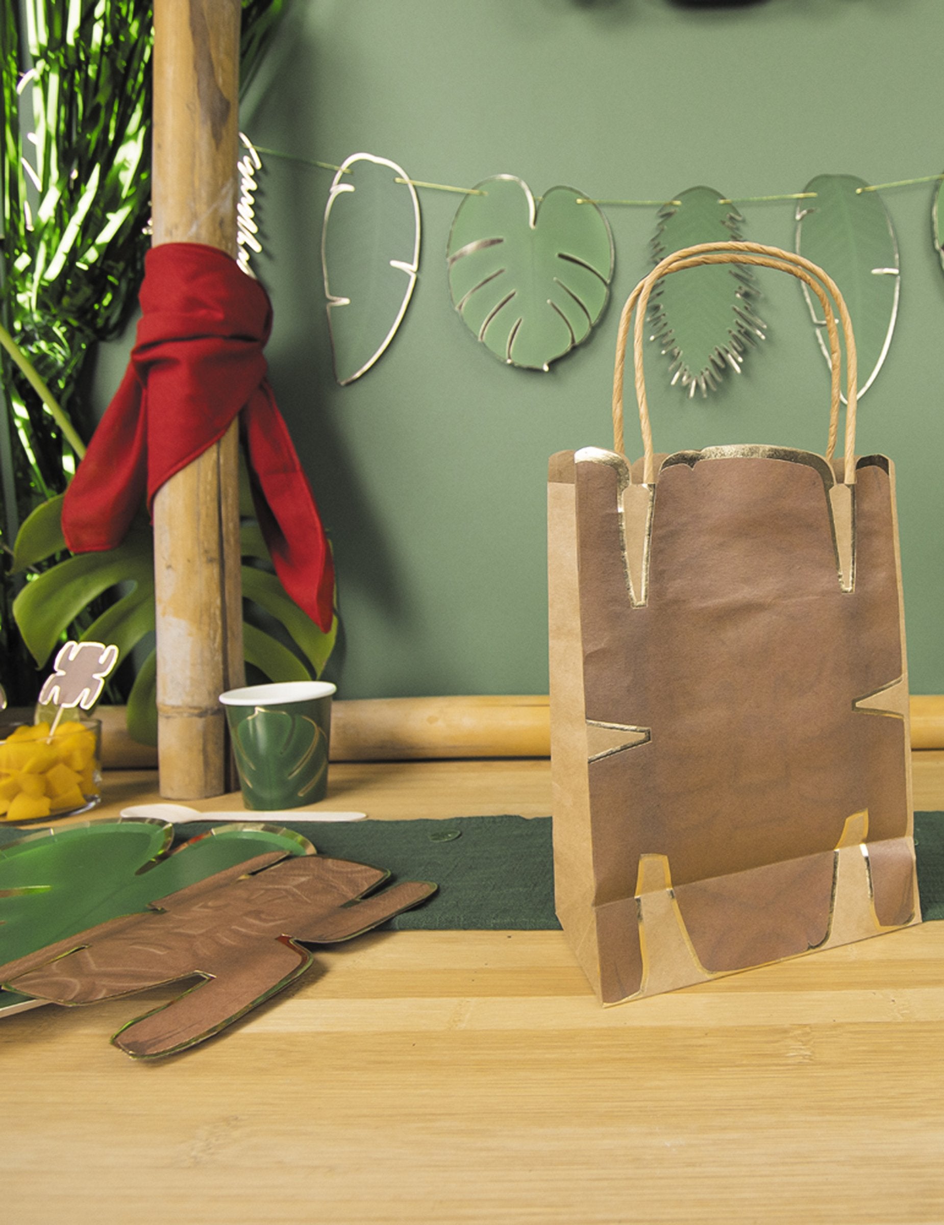 Ezeket az ajándékzsákokat 4 -es tételben adják el, és körülbelül 28,5 cm x 8 cm x 15 cm -es méretet mutatnak. Papírban Kraft színű, barna és arany totem nyomtatású. 2 fogantyúval vannak felszerelve Raphia -ban. Ezek a táskák tökéletesek lesznek, hogy kis ajándékokat kínáljanak barátainak a születésnapod alkalmából!
