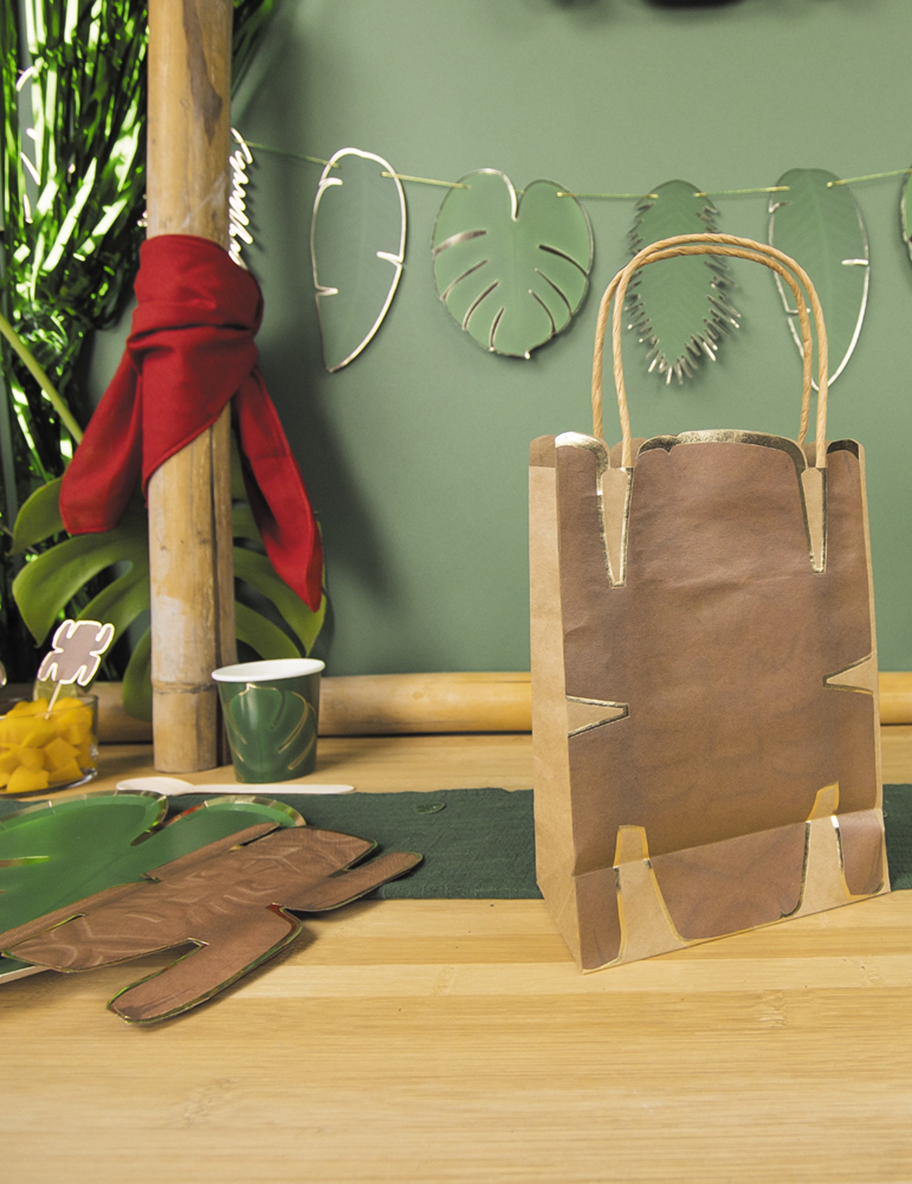 Ez a készlet 4 darabot tartalmaz totem papírzacskók Ezeket fiatal felfedezők számára tervezték. kraft papírzacskók 28,5 x 15 cm Két fogantyúval vannak felszerelve a könnyű hordozás érdekében. Egzotikus totemdizájnjuk barna és arany árnyalatokban pompázik. kis ajándéktasakok tökéletesek jutalomfalatok vagy játékok becsomagolásához, hogy kioszthassák őket egy buli alatt születésnap a témárólkaland.