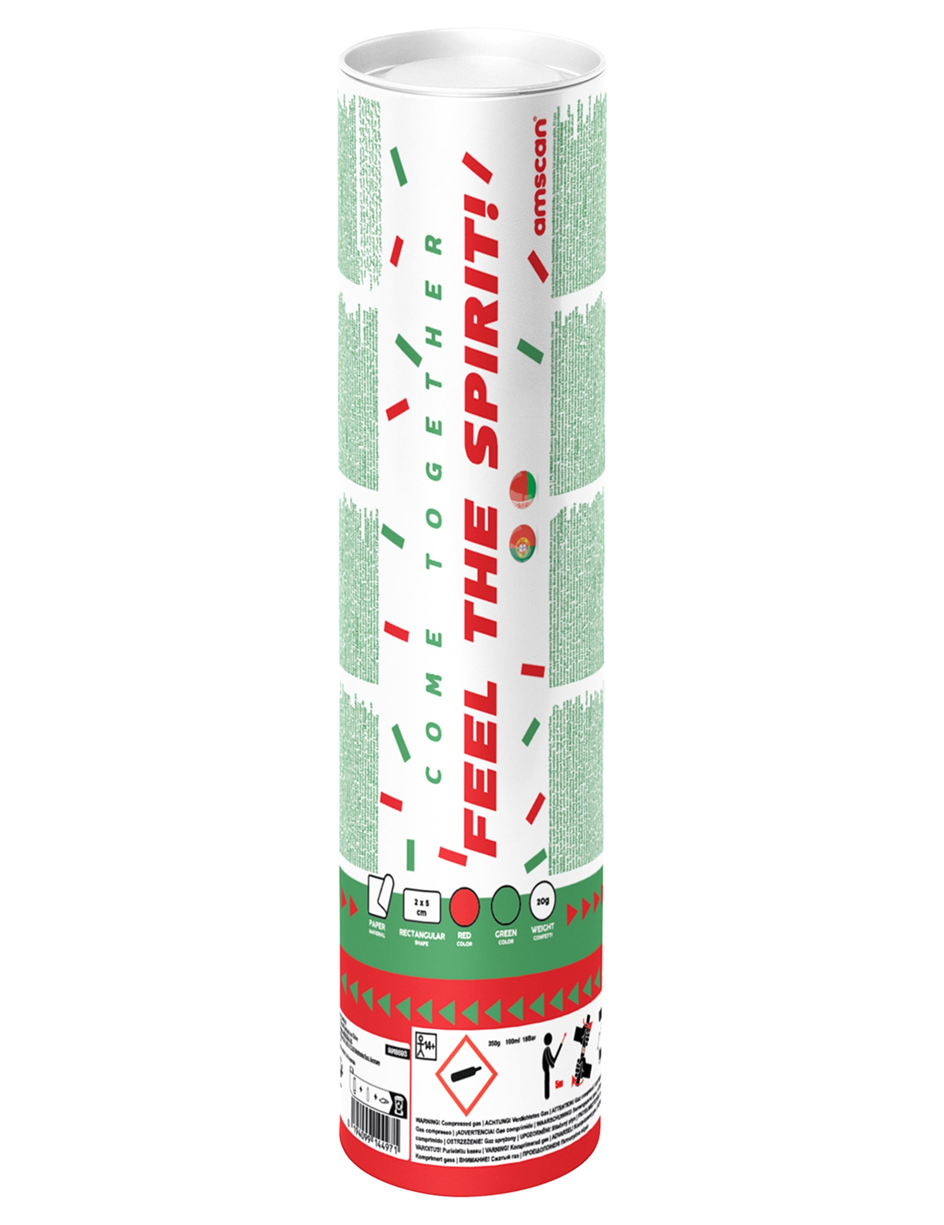 Ez a konfetti ágyú vörös és zöld színű konfettiből áll. Használata egyszerű, csak forgassa el a hordó alját, hogy az összes konfetti kialudjon! Ideális lesz a portugál csapat támogatására egy sportesemény során!