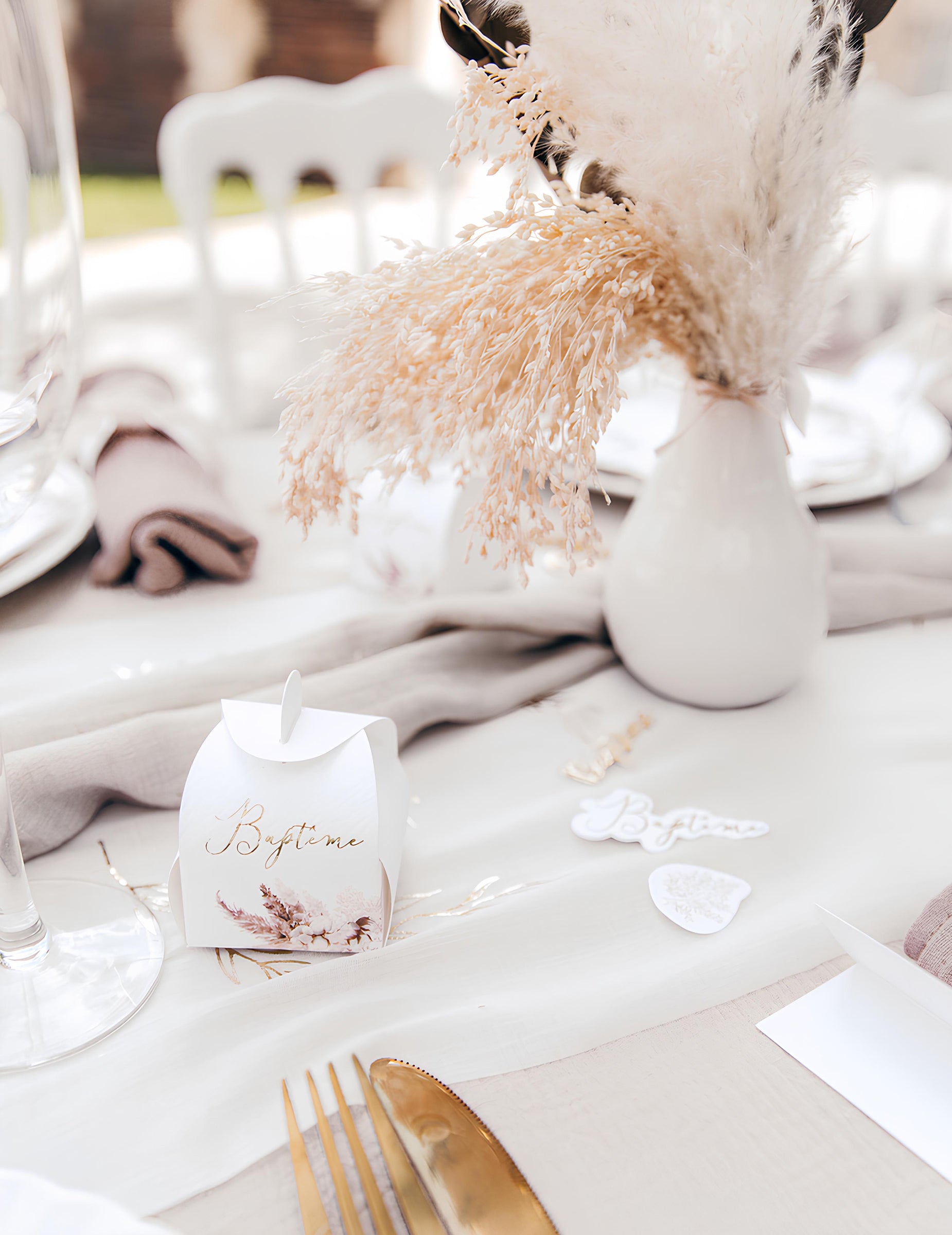 10 karton keresztelői doboz pampafűvel és gyapotvirágokkal (5x7 cm) cm
