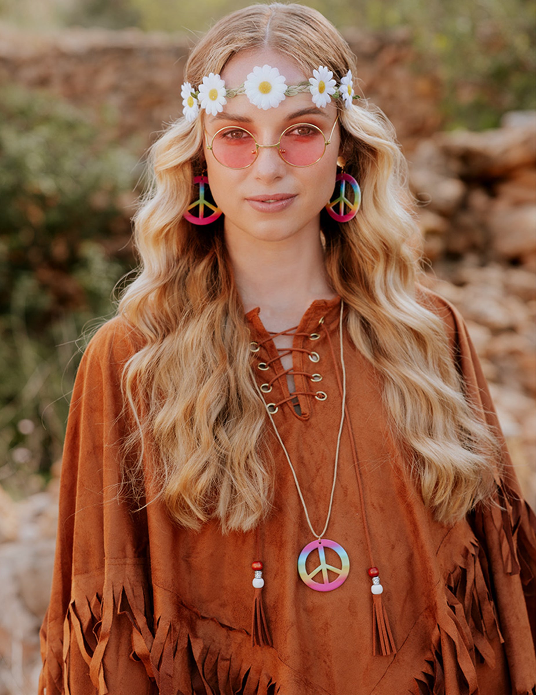 Barna színű és hosszú rojtokkal díszített. A nyakkivágásnál húzózsinór található, ami enyhén felsőszerű hatást kölcsönöz neki. Szarvasbőr hatású.