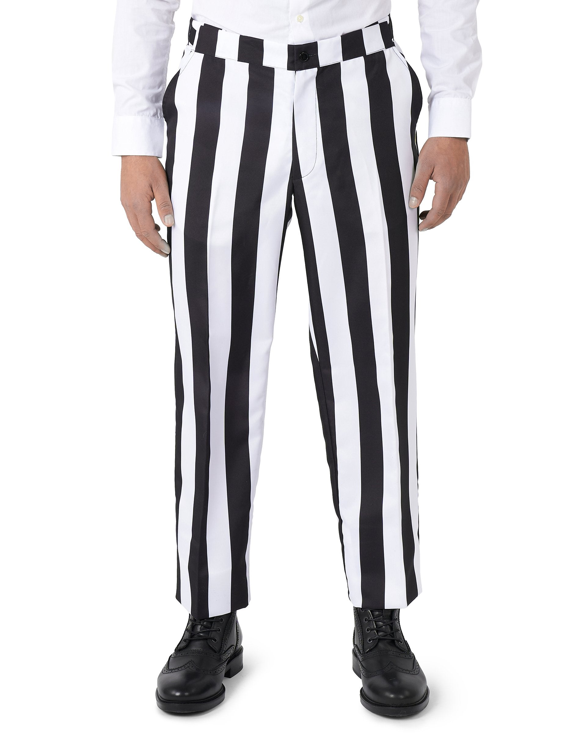 Ez a Beetlejuice jelmez férfiak számára készült, és tartalmaz egy kabátot, nadrágot és nyakkendőt. A híres Beetlejuice jelmezét ábrázolva, a kabát és a nadrág fekete -fehér függőleges csíkokkal rendelkezik. A hosszú lélű kabátnak 2 gombja van az elülső oldalon, hogy könnyen bezárja, és hamis zsebekkel díszíthető. A nadrágnak fekete színű gombja és két zseb van. A jelmezt egy fekete nyakkendő fejezi be. Készítsen szenzációt a Halloween estéjére ezzel a teljes Beetlejuice jelmezkel!