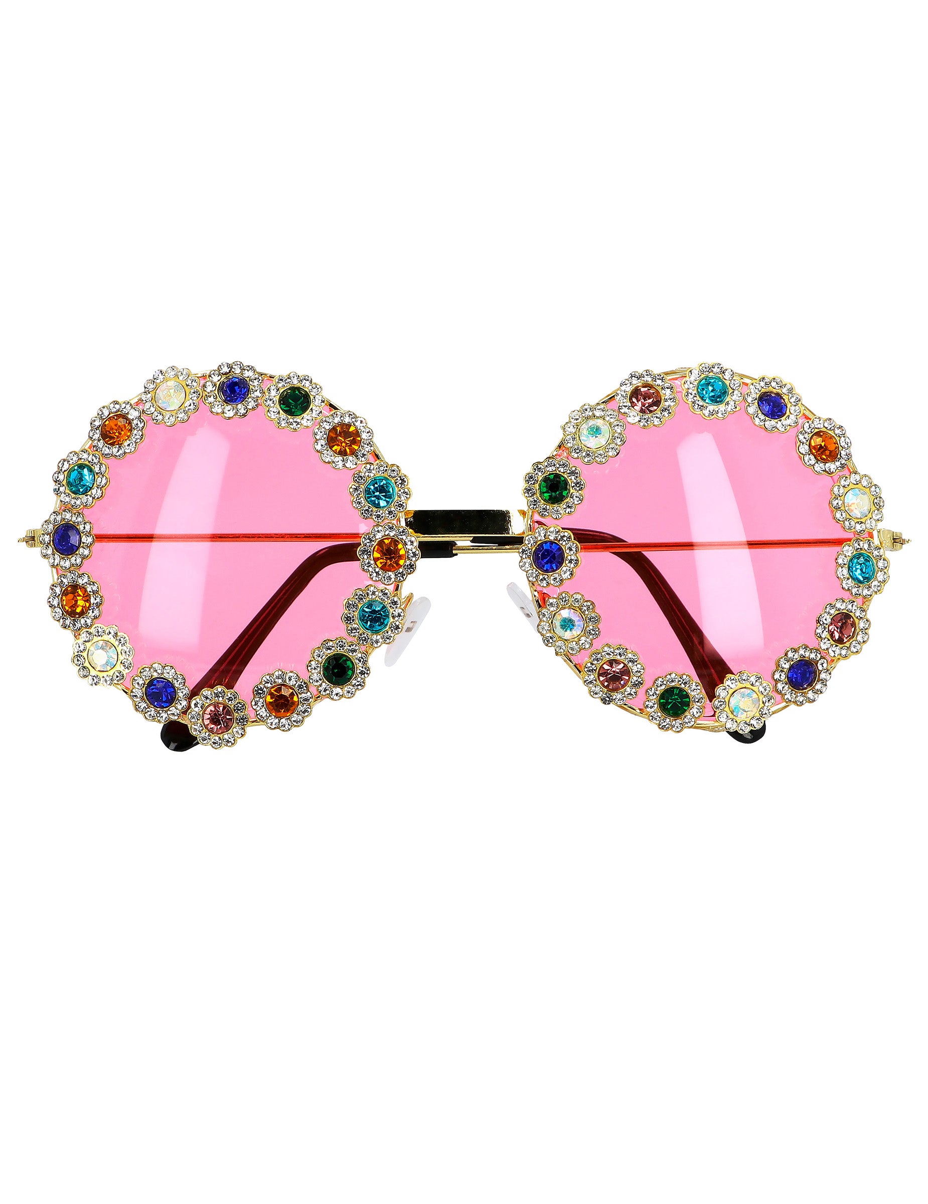 Felnőttek számára tervezett retro-elegáns szemüveg megkülönbözteti a rózsaszín színezett szemüvegüket és a különböző színű csillogó strasszokkal díszített kör alakú keretüket. Ideális egy merész ruhához a fesztiválon, egy témájú estén vagy a mindennapi élethez való szórakoztató érzéshez, ezek a szemüvegek nem maradnak észrevétlenül. Ezekkel a strasszos szemüvegekkel, amelyek egyedi stílusban vannak, tedd ragyogni, és rögzítse az összes szemét!