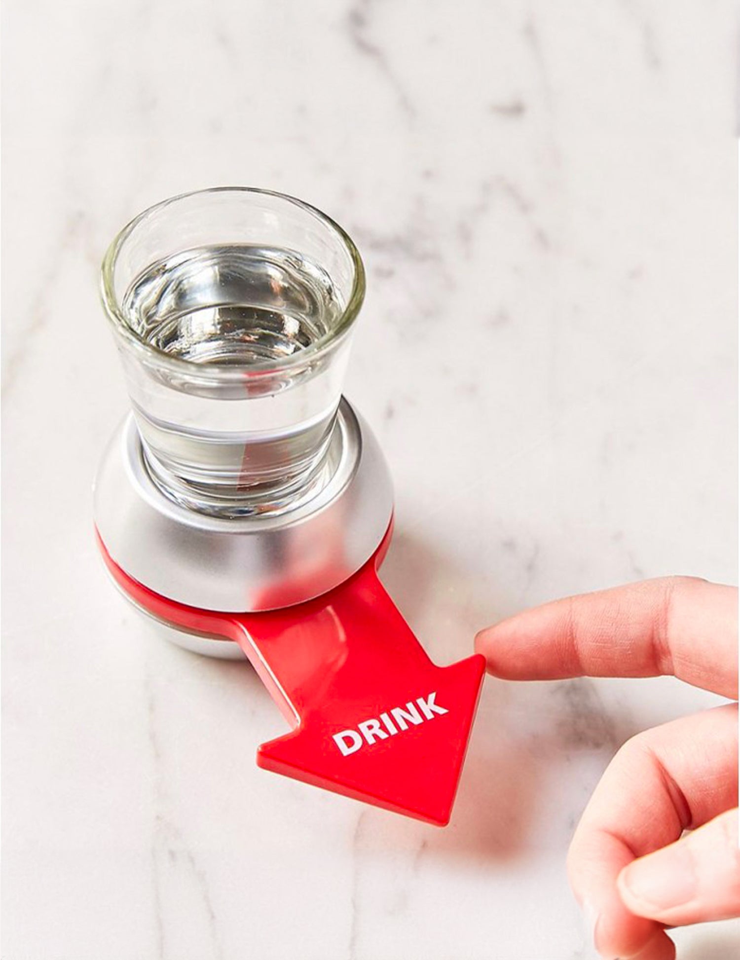 Ez az aperitif centrifugálás A lövés üvegből és egy tartóból áll. A támogatást egy forgó piros feltűnő kíséri, amely megtervezi azt a személyt, akinek meg kell inni az 5cl -es poharat. Az "ital" feliratot a flêche -en jelzik. Hozzon szórakozást és jó humorot estéid során a barátokkal ezzel az aperitif forgassa meg a lövést!