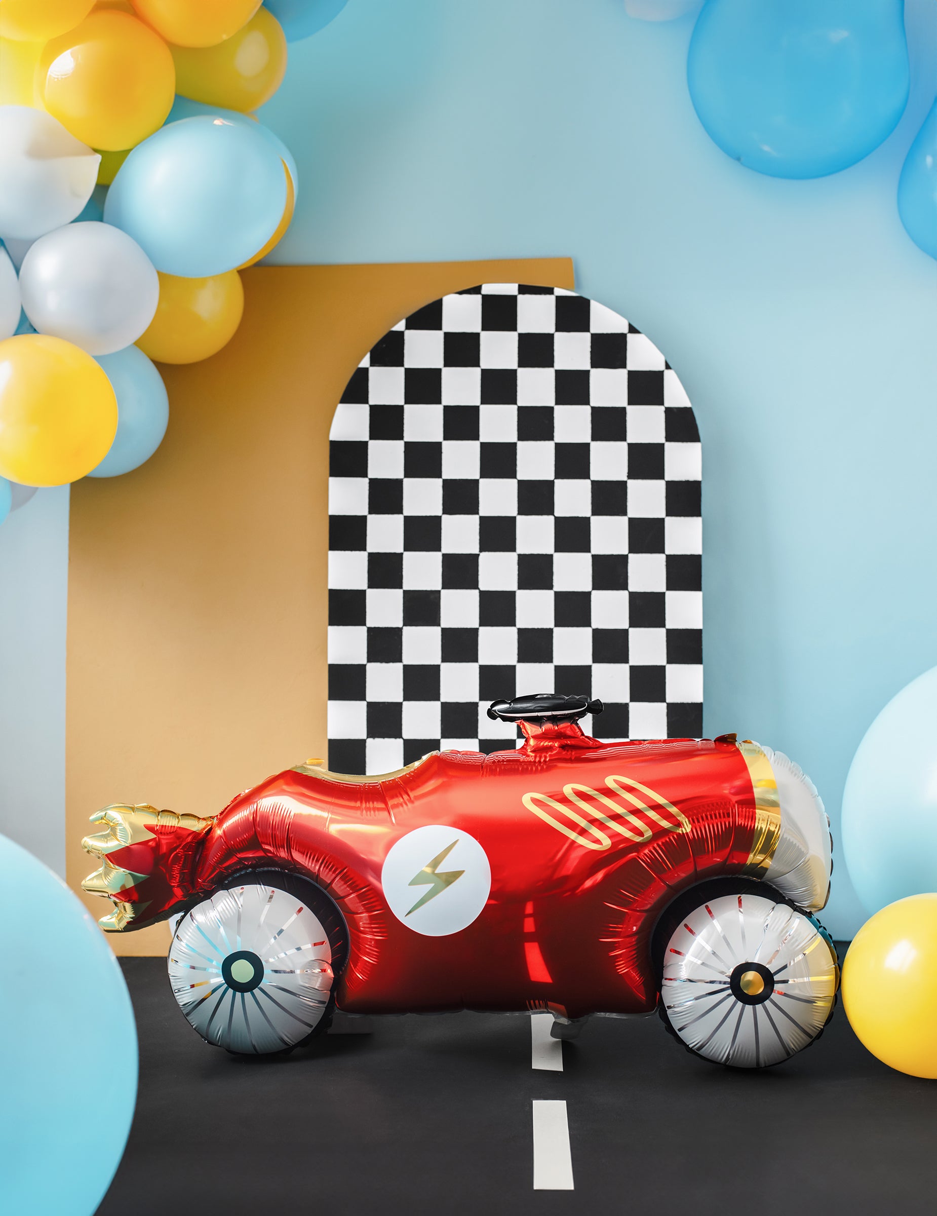 Piros versenyautó alumínium golyó 111 x 63 cm