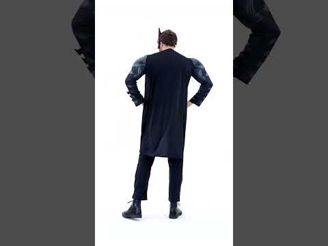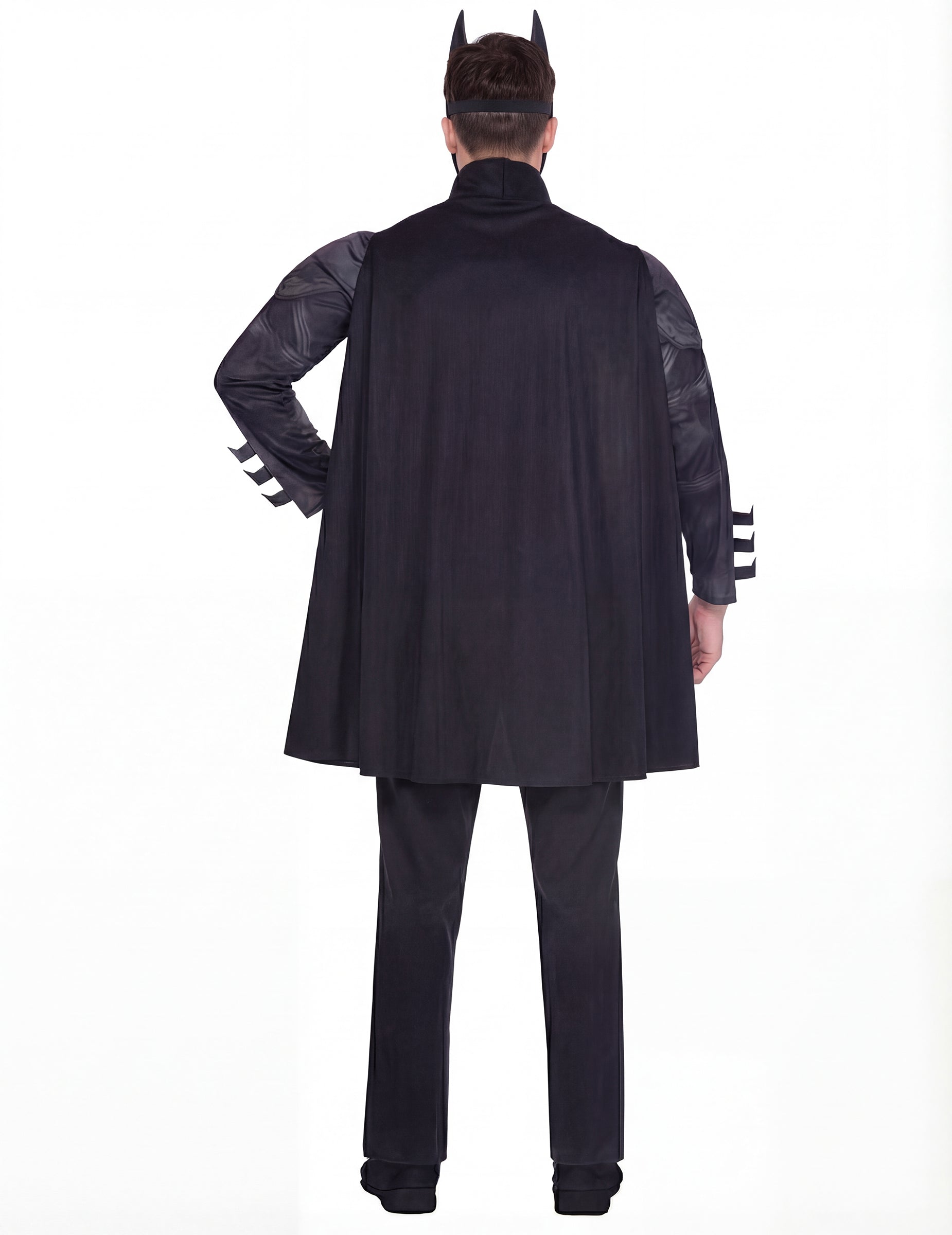 A teljesen fekete overál lenyűgöző izomzatot ábrázoló nyomott mintával készült, a mellkason párnázással, hogy még atletikusabb hatást keltsen. Az arany színű öv, amely közvetlenül a ruhára van nyomtatva, visszaadja Batman ikonikus logóját és legendás kütyüit.