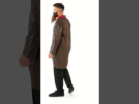 A felső világosbarna, arany gombokkal díszített, a szélein pedig egy kis piros díszítés látható, amely az alatta viselt inget utánozza. A hosszú, sötétbarna, kopottas felületű dzseki tökéletesen idézi Hagrid ikonikus kabátját, rusztikus és autentikus stílust kölcsönözve az egész összeállításnak.