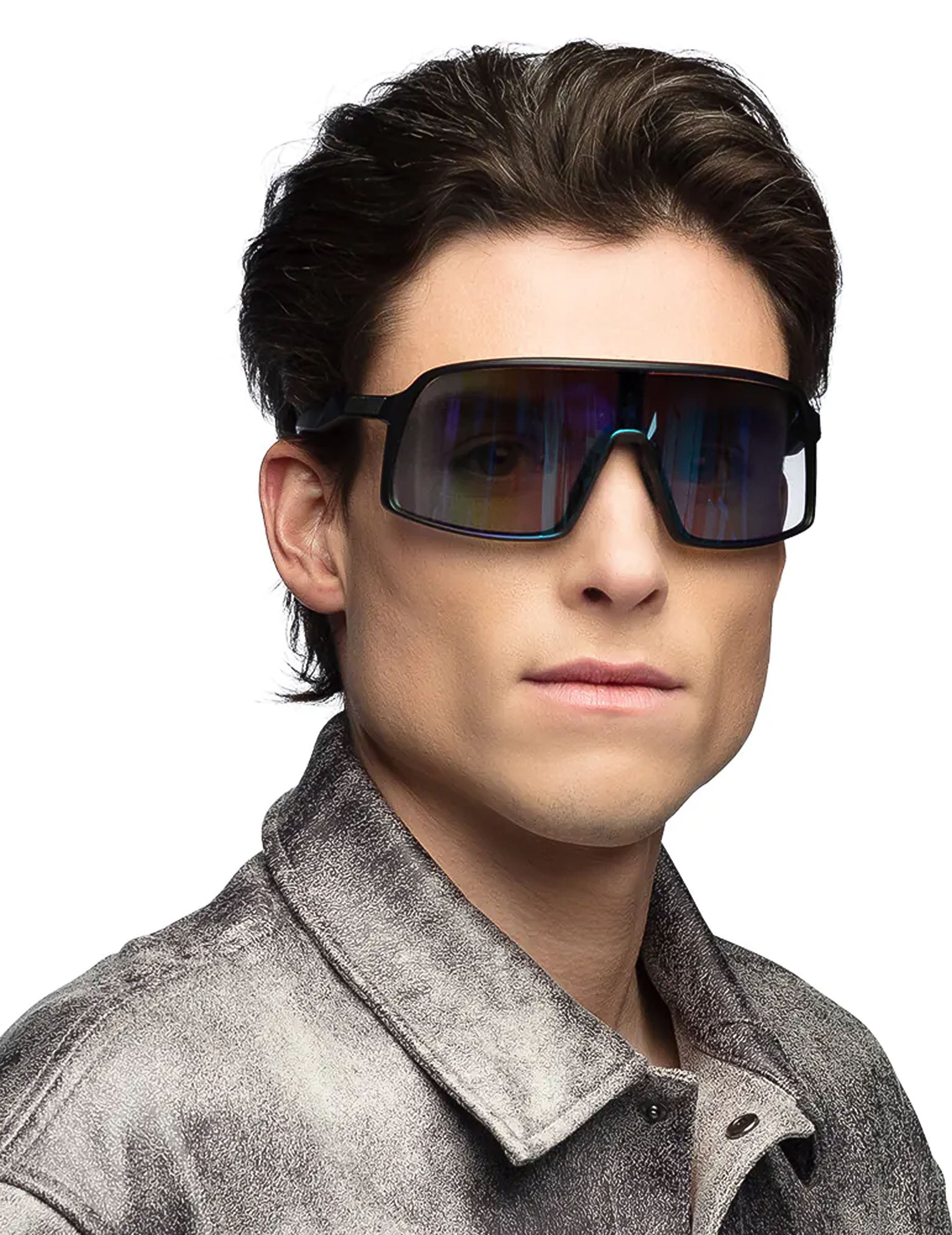 Ezek a futurisztikus szemüvegek tökéletesek azoknak a felnőtteknek, akik sportos és ünnepi megjelenést keresnek. Fekete keretükkel és szemüvegükkel színes reflexiókkal vonzzák a szemét! Modern és merész stílusuk ideális kiegészítővé teszi a parti ruhák kitöltését, vagy a fesztivál idején kiemelkedni. Kombinálja őket egy ragyogó ruhával a garantált hatás érdekében!