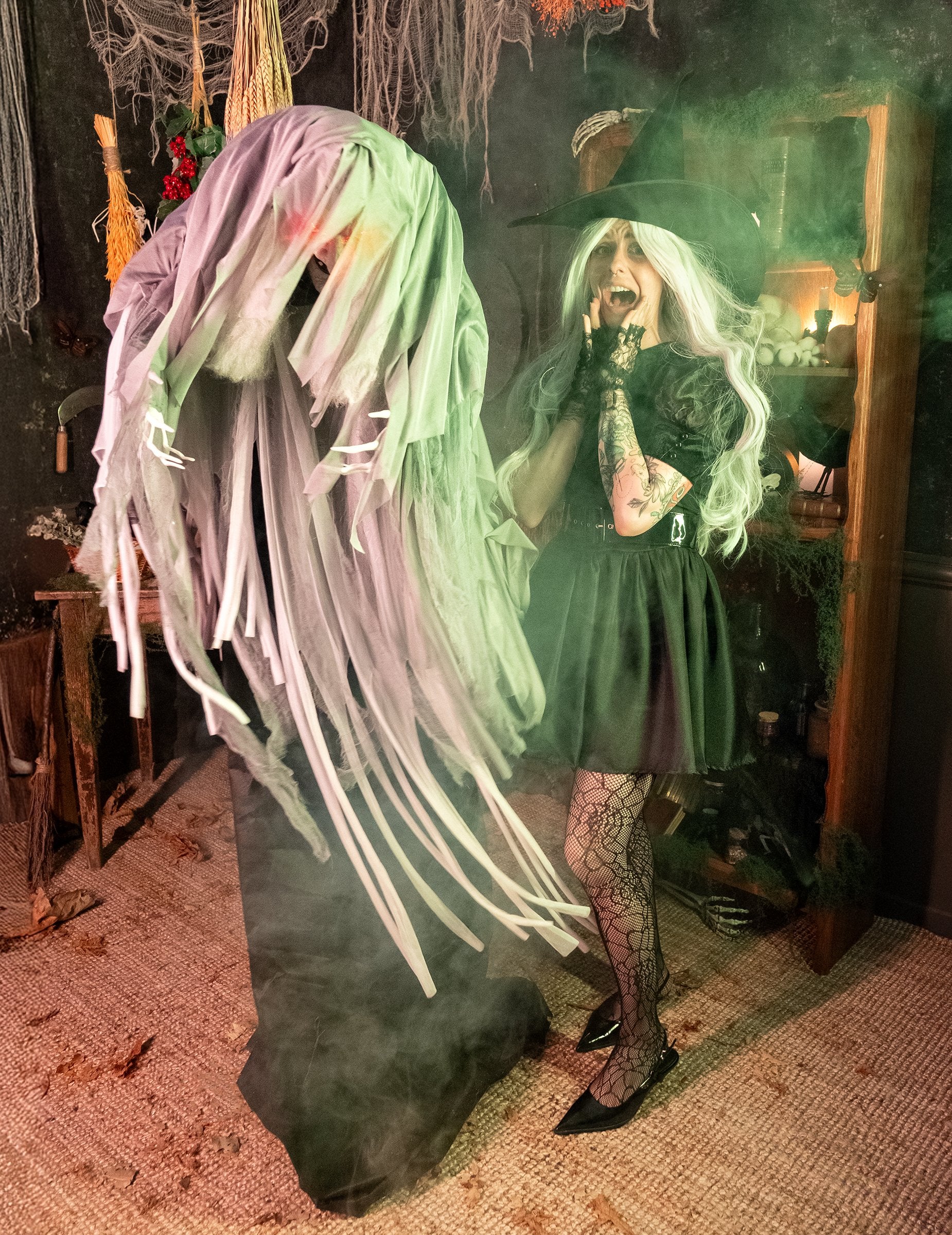 Avec sa silhouette voilée de noir et de gris, cette Faucheuse Animée de 120 cm offre une vision terrifiante. Son regard perçant, ses griffes osseuses et sa cape en lambeaux donnent vie à un cauchemar éveillé. Dès qu’un son est perçu, elle se met en mouvement, ses yeux rouges s’illuminent, et un cri effrayant se déclenche, glaçant l’atmosphère. Elle fonctionne avec 3 piles AA (non incluses) et devient un atout incontournable pour une décoration sinistre pour Halloween