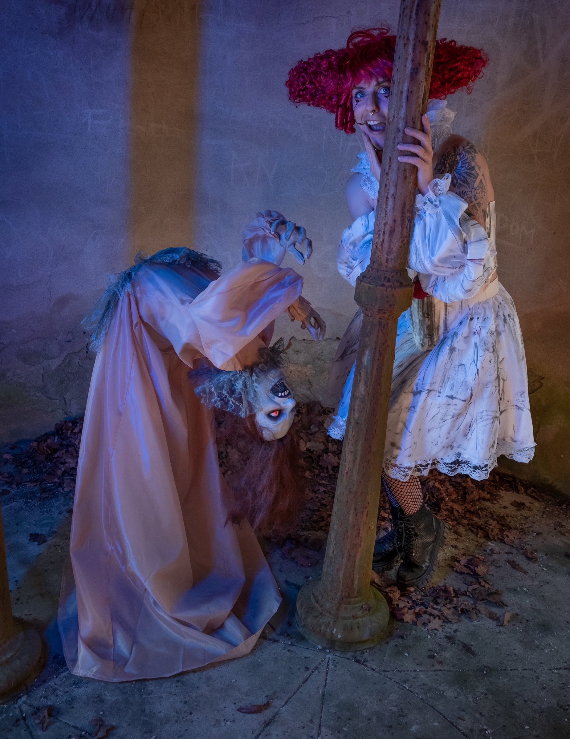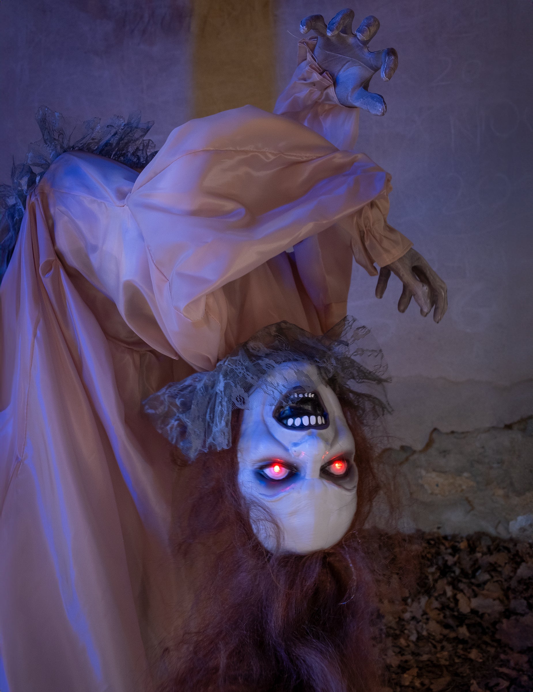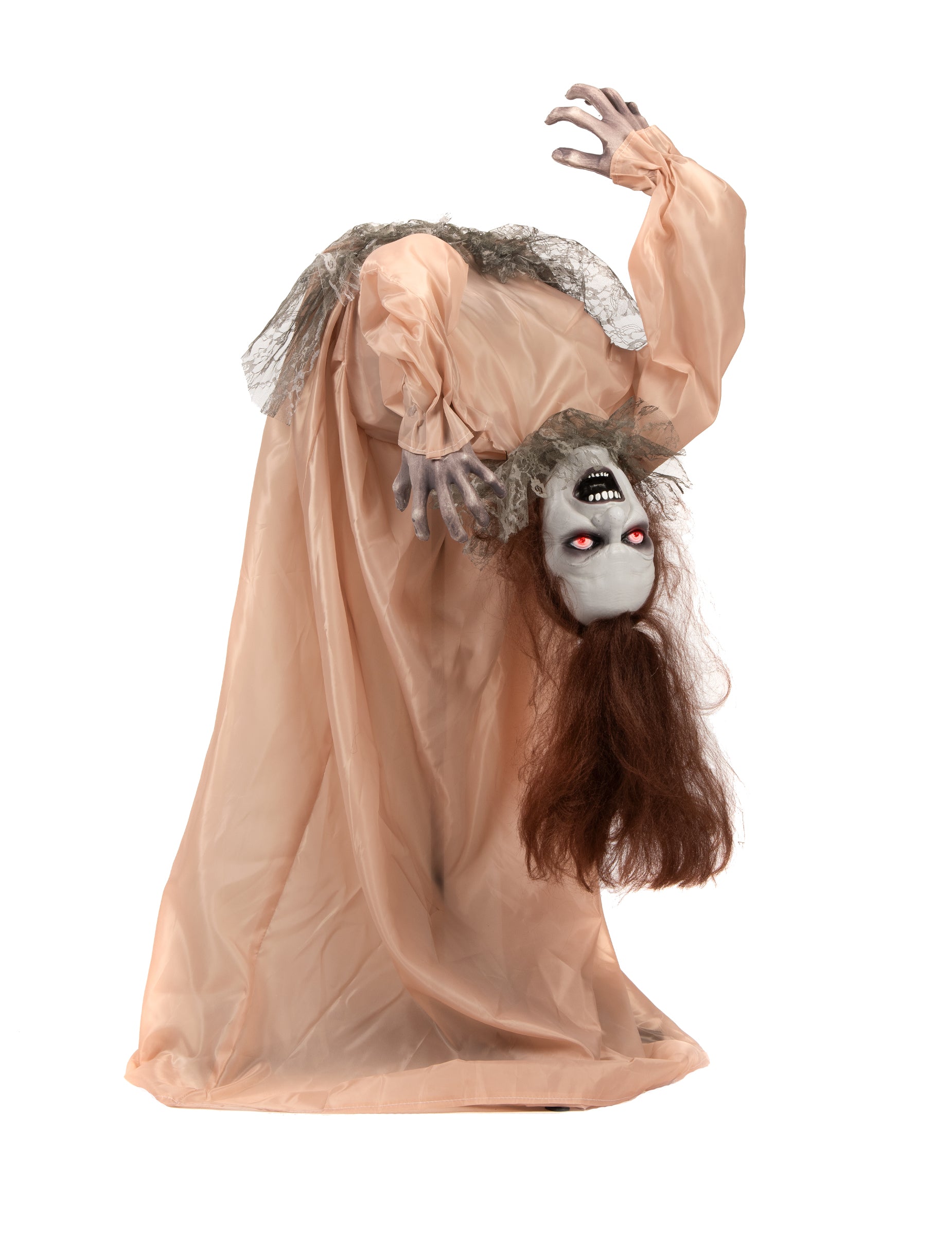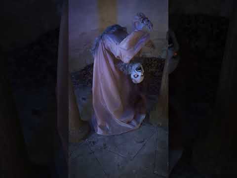 Fordított testtartásával és hosszú ruha és sápadt, ez Animált átkozott hölgy feltűnő jelenetet kínál.