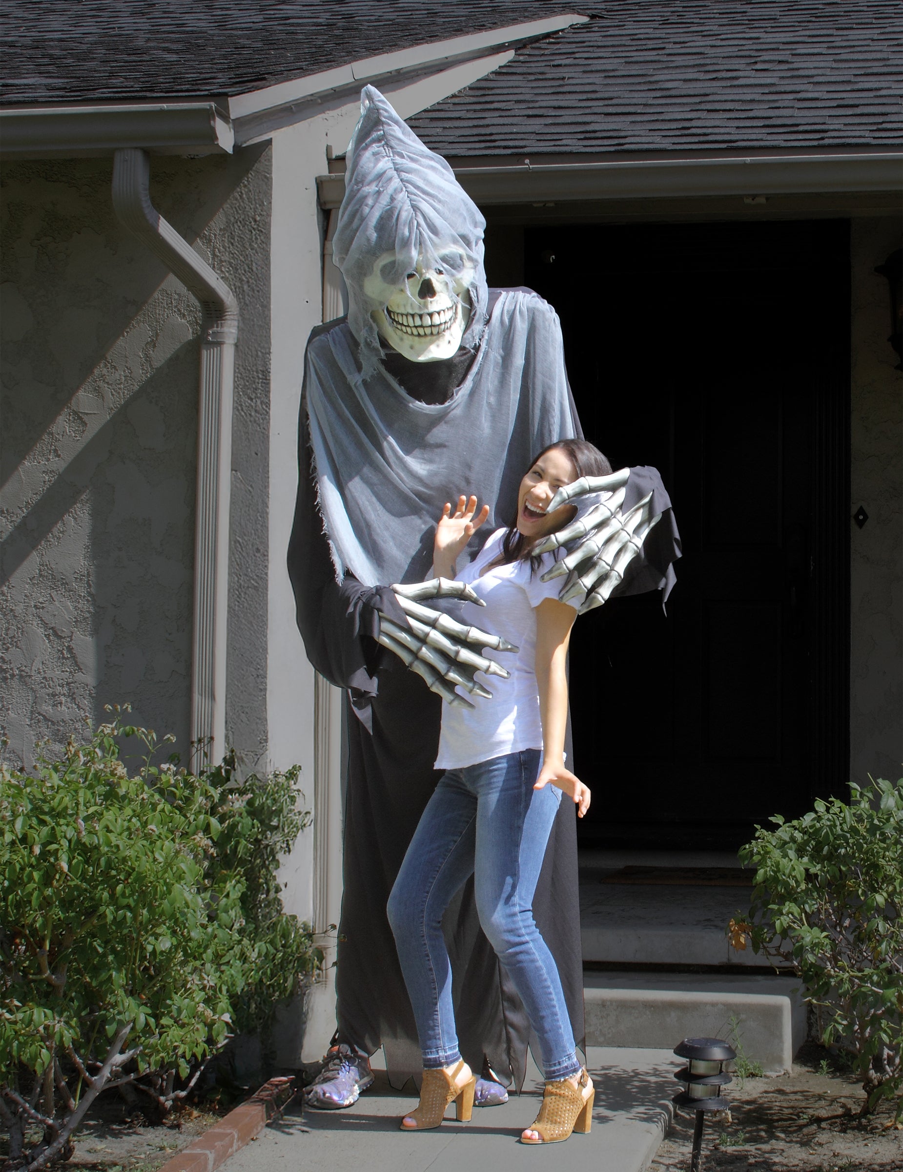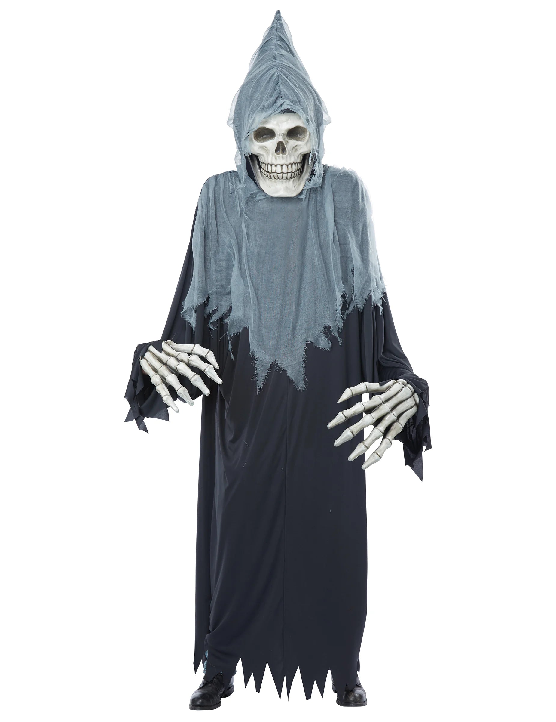 Plongez dans la terreur avec ce déguisement de faucheur géant, idéal pour Halloween ou toute soirée à thème effrayant. Avec sa hauteur impressionnante pouvant atteindre 2,40 mètres, ce costume garantit une apparition spectaculaire et inoubliable. Il se compose d’une longue robe noire à capuche effilée, agrémentée de voilage gris déchiré pour un effet spectral et menaçant. Un panneau de tissu sur le torse permet une visibilité vers l’extérieur tout en conservant l’illusion macabre. Le masque de crâne réaliste, aux détails soignés, amplifie l’effet terrifiant, tandis que les mains monstrueuses aux doigts allongés ajoutent une touche encore plus sinistre. Polyvalent, ce déguisement peut être porté pour un look saisissant grâce aux épaules et bras gonflables, ou transformé en une décoration géante suspendue à l’aide du cordon inclus, parfait pour métamorphoser votre espace en véritable scène d’horreur. Que ce soit pour une soirée d’effroi ou une parade d’Halloween, ce faucheur géant incarne l’épouvante à son apogée !