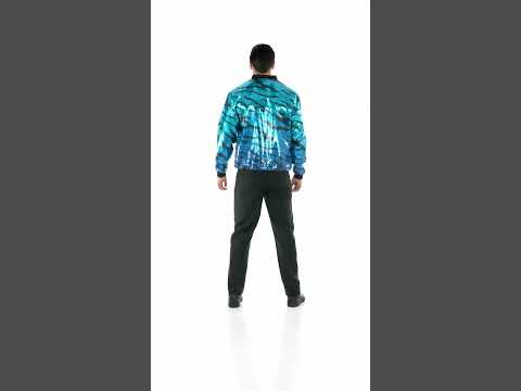 Vegyél fel egy egyedi megjelenést ezzel az uniszex bomber dzsekivel, amely könnyű anyagból készült, kék és fekete flitterekkel borítva, elegáns hullámos mintával díszítve. Tökéletes keveréke a modernségnek és a ragyogásnak, ideális mindazok számára, akik minden alkalommal szeretnének kitűnni.