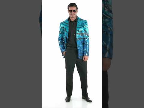 Mutasd meg a stílusod ezzel felnőtt öltönyzakóCsillogó anyagból készült, kék flitterekkel díszített, fekete mintákkal kiemelt, kifinomult, mégis merész megjelenése egyedi darabmá teszi, amely bármilyen alkalomra ragyog.