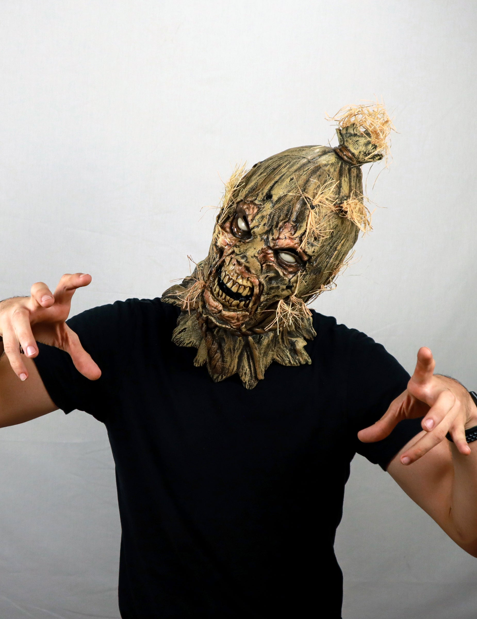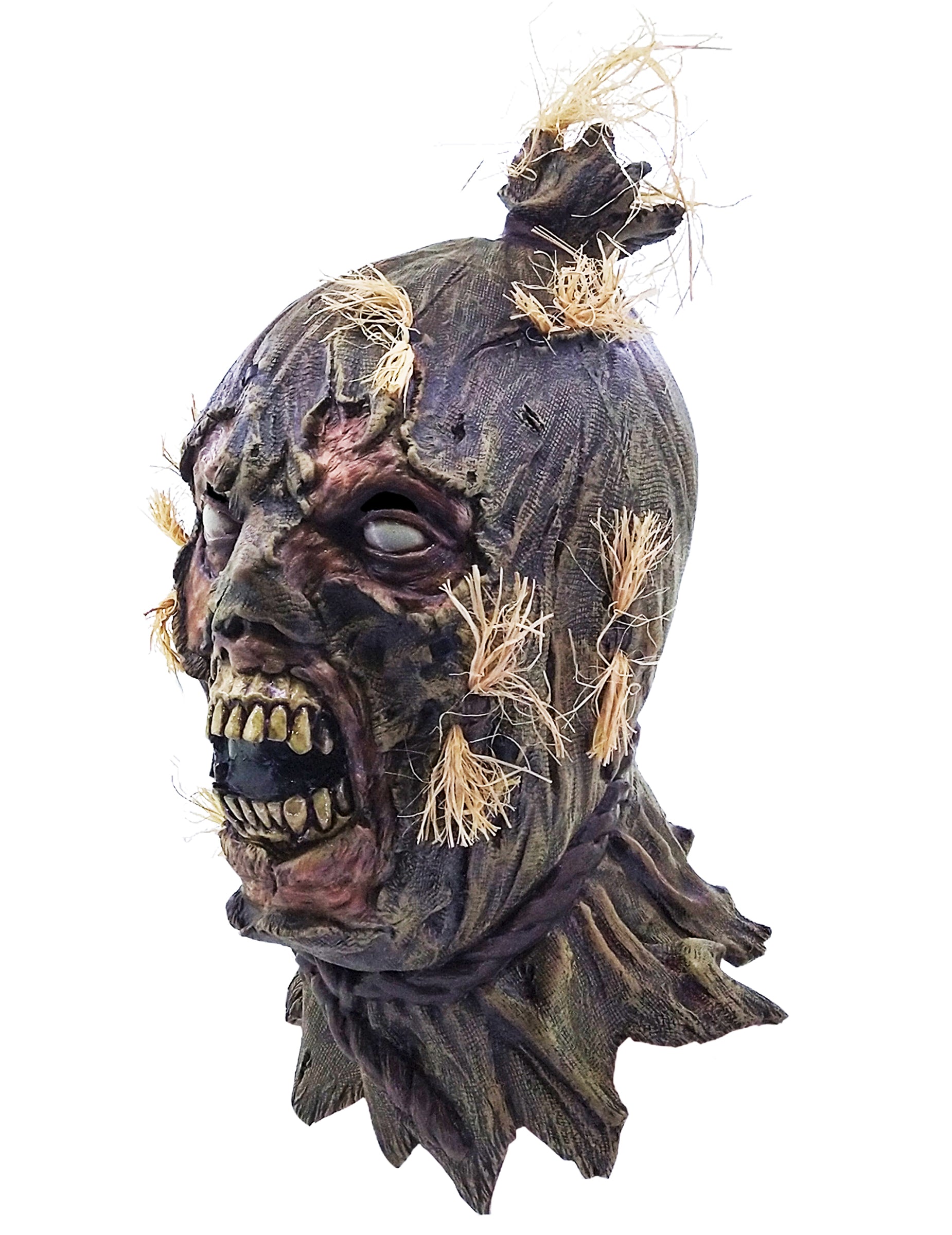 Ez teljes zombi madárijesztő maszk félelmetes teremtménnyé változtat, egy hátborzongató keverékké a következők között: madárijesztő kísértetjárta és éhes élőhalott. Szétszakadt zsákvászonból készült arca, melyen rothadó bőr látható, üres fehér szemei és eltorzult, megsárgult fogakkal tarkított szája olyan külsőt kölcsönöz neki, lidérces.