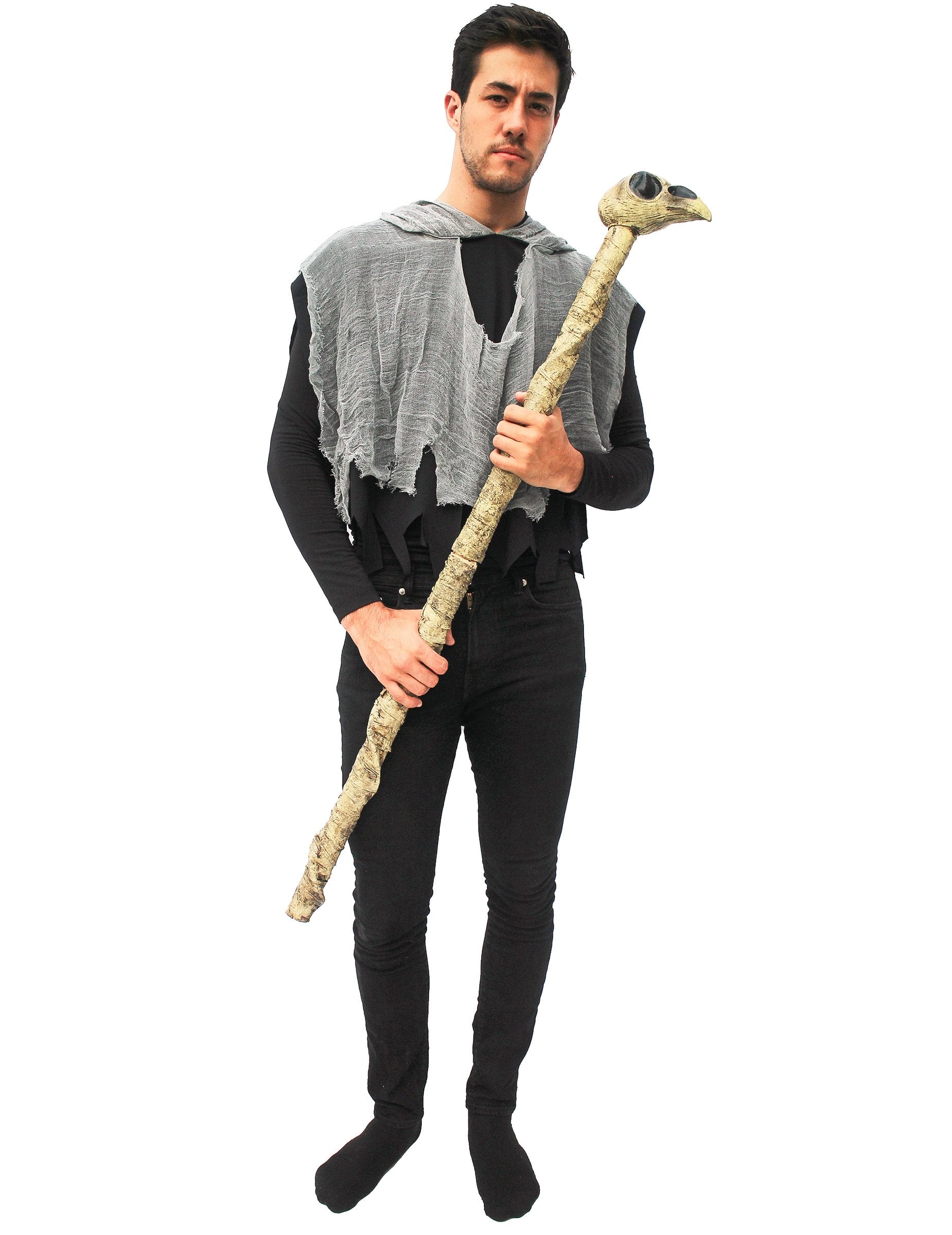 Ce sceptre crâne corbeau médecin de la peste luxe est l’accessoire parfait pour compléter un déguisement sombre et mystérieux. Mesurant environ 120 cm, il se compose de plusieurs parties à assembler facilement. Son design travaillé imite un bois vieilli et sculpté, surmonté d’un crâne de corbeau aux yeux sombres, rappelant les figures emblématiques des médecins de la peste. Sa finition détaillée lui confère un aspect authentique et inquiétant, idéal pour incarner un personnage énigmatique. Que ce soit pour un déguisement de médecin de la peste, de sorcier ou de maître des ténèbres, ce sceptre ajoutera une touche fascinante et théâtrale à votre costume lors d’Halloween ou d’une soirée à thème.