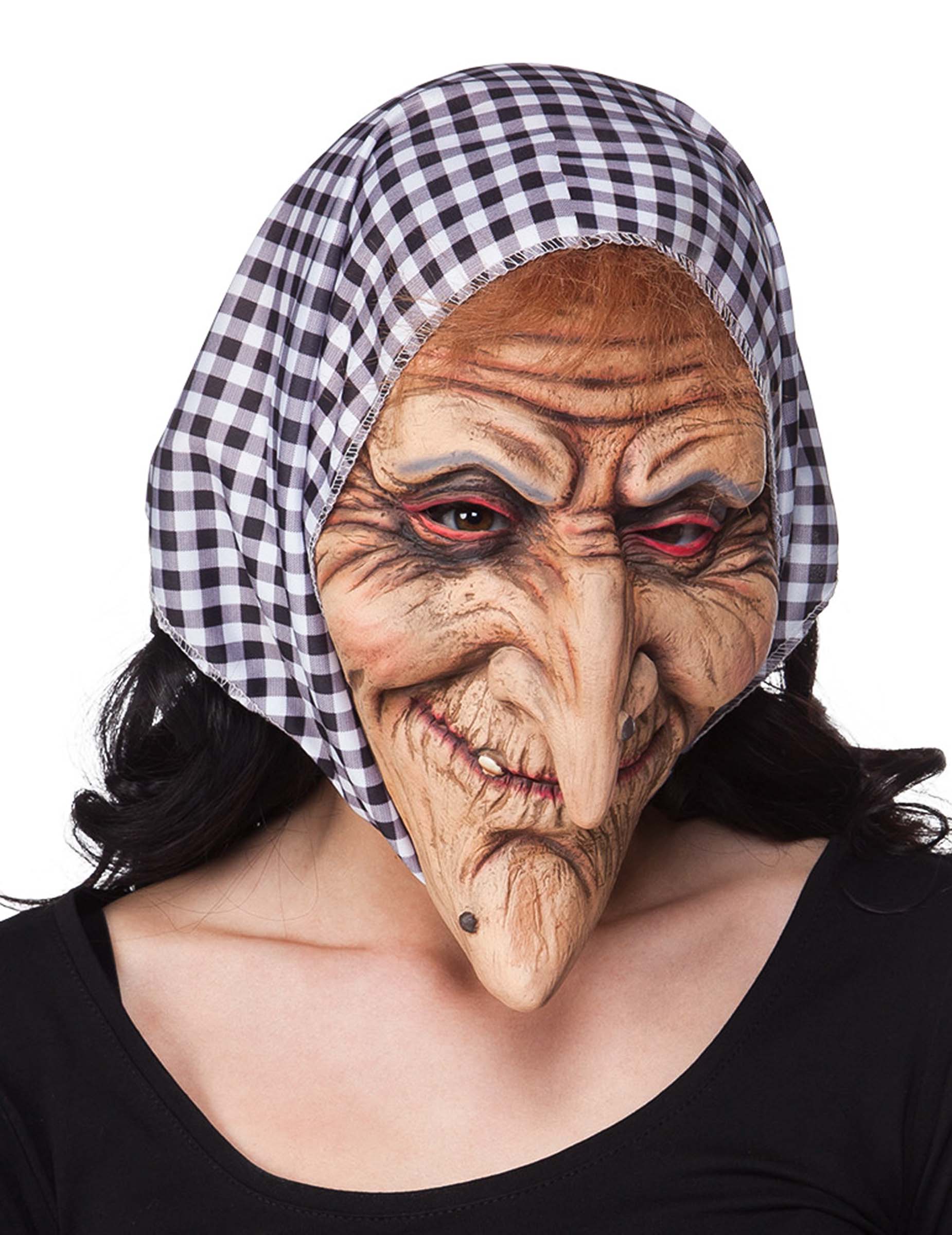 Ez a régi boszorkánymaszk felnőtteknek tökéletes kiegészítője egy halloweeni jelmeznek vagy tematikus bulinak. Puha latexből készült, egy ráncos és kifejező arcot ábrázol, hosszú, kampós orral és baljós mosollyal. A maszkot egy fekete-fehér kockás sál díszíti, amelyet közvetlenül a fejre varrtak, rusztikus hatást kölcsönözve neki. Könnyen felhelyezhető, teljesen befedi az arcot, magával ragadó megjelenést kölcsönözve, miközben továbbra is szabad mozgást biztosít. Tökéletes egy hagyományos stílusú boszorkány megtestesítéséhez és maradandó benyomás keltéséhez.