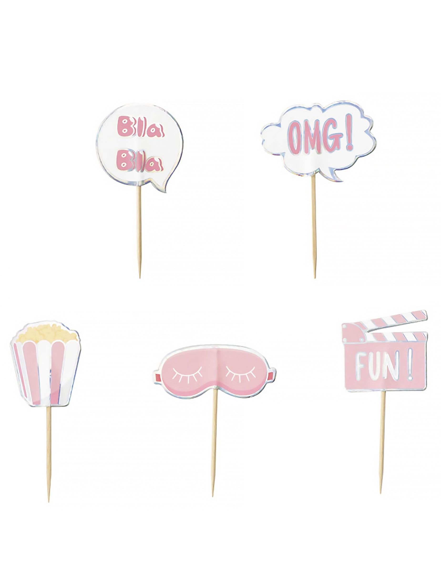 Dobd fel egy csipetnyi vidámságot a svédasztaloddal ezekkel 10 pizsamaparti koktélválogatás 4 x 5 cm. Különféle mintákkal, például alvómaszkokkal, pattogatott kukoricával vagy szövegbuborékokkal díszítve, ezek a díszes díszek tökéletesek egy csajos este feldobására. Poharakkal, cupcake-ekkel vagy előételekkel is illenek egy divatos megjelenéshez. Nélkülözhetetlen kiegészítők az ünnepi és színes hangulat megteremtéséhez rendezvényeiden.