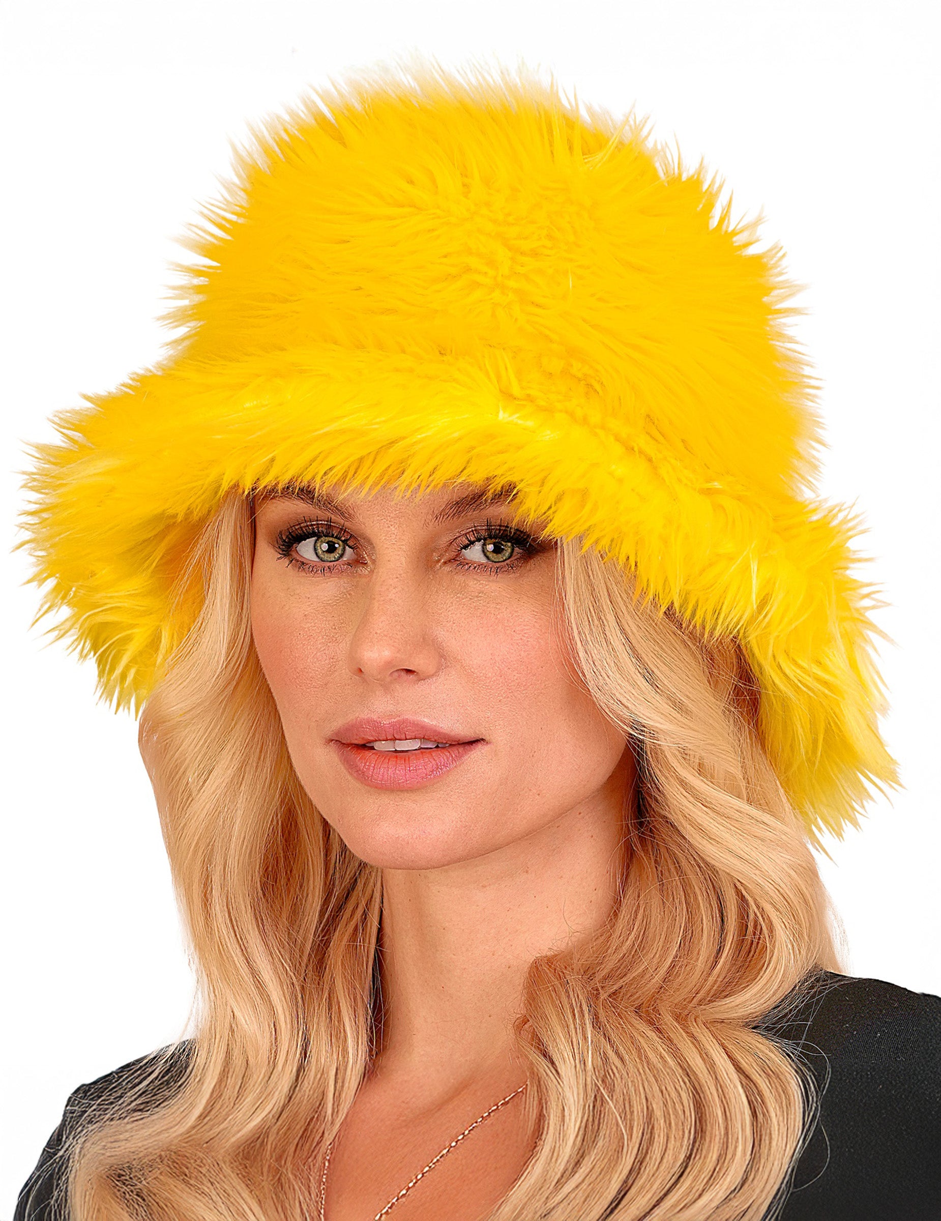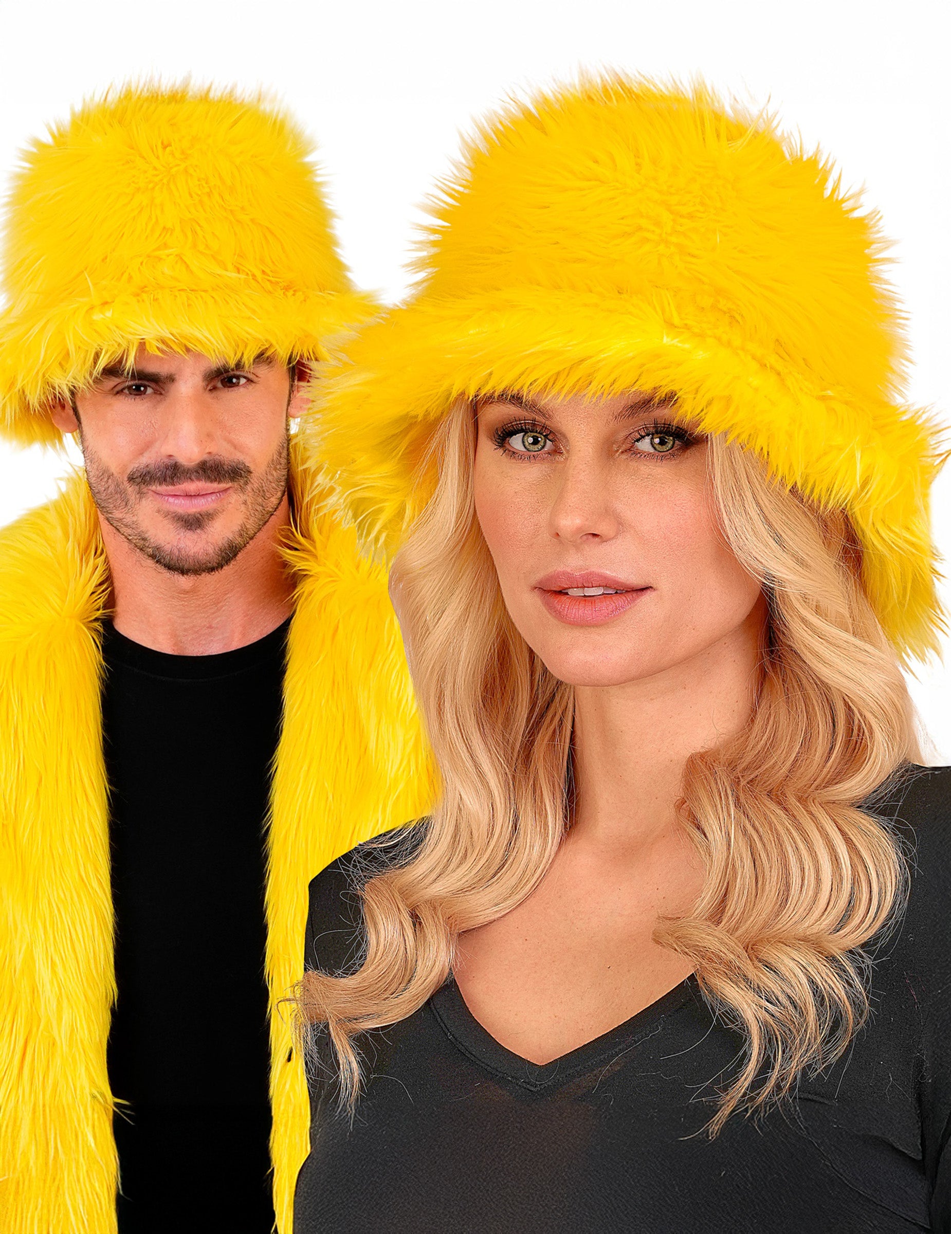 Ez a sárga műszőrme bob sapka ragyogó és pezsgő hangulatot kölcsönöz megjelenésének. Élénk színe és puha textúrája egyszerre mókás és feltűnő kiegészítővé teszi. Tökéletes választás farsangra, jelmezes bulira vagy bármilyen színes rendezvényre, ez a kalap igazi napsütést visz az öltözékébe.
