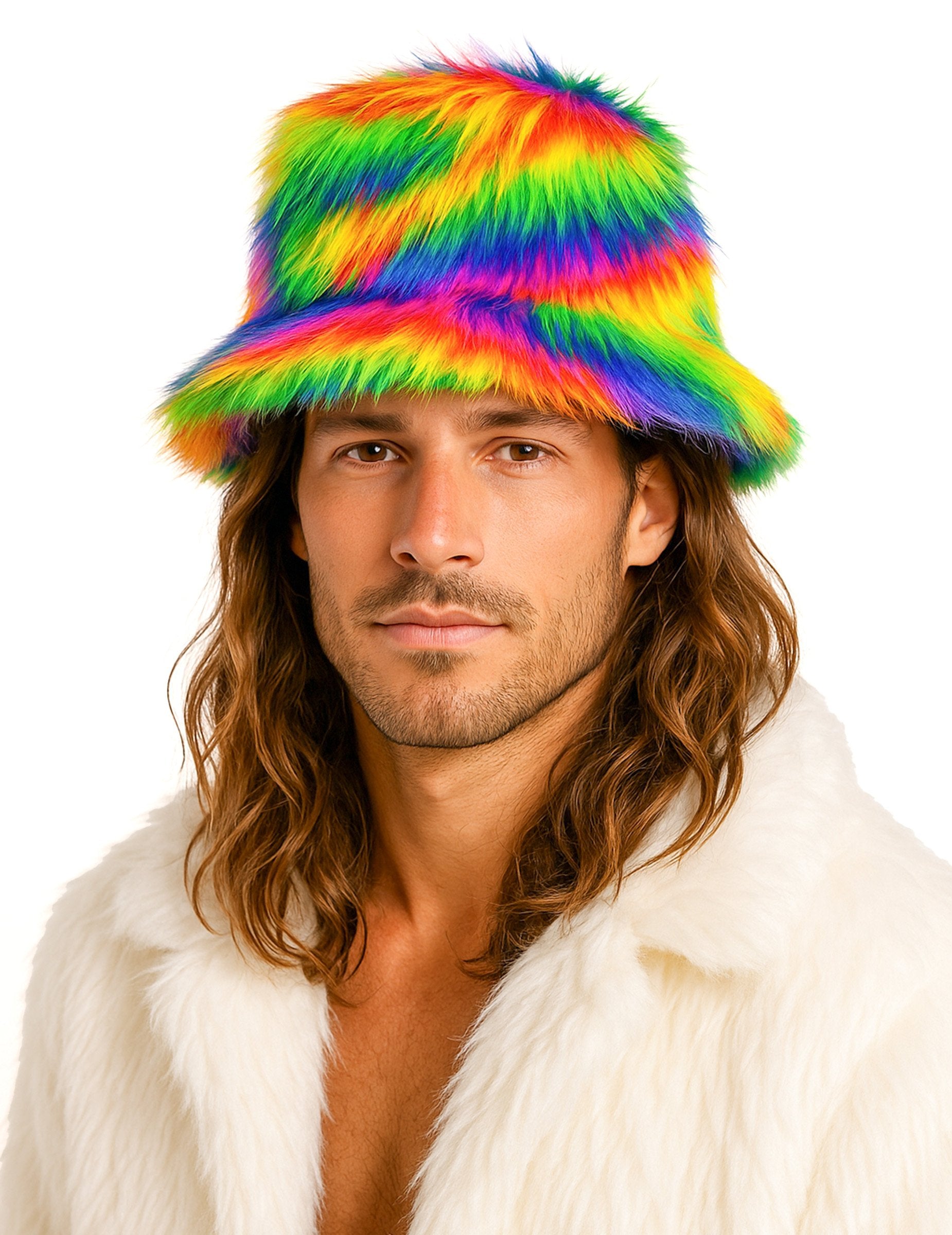 Adj egy vidám és színes hangulatot az öltözékedhez ezzel a színes műszőrme bob sapkával! Élénk színeivel és puha tapintásával ez a kalap tökéletes kiegészítője egy retró, fesztivál vagy szivárvány jelmeznek. Ideális farsangra, jelmezes bulira vagy felvonulásra, ez a bob sapka azonnal stílust és eredetiséget kölcsönöz a megjelenésednek.