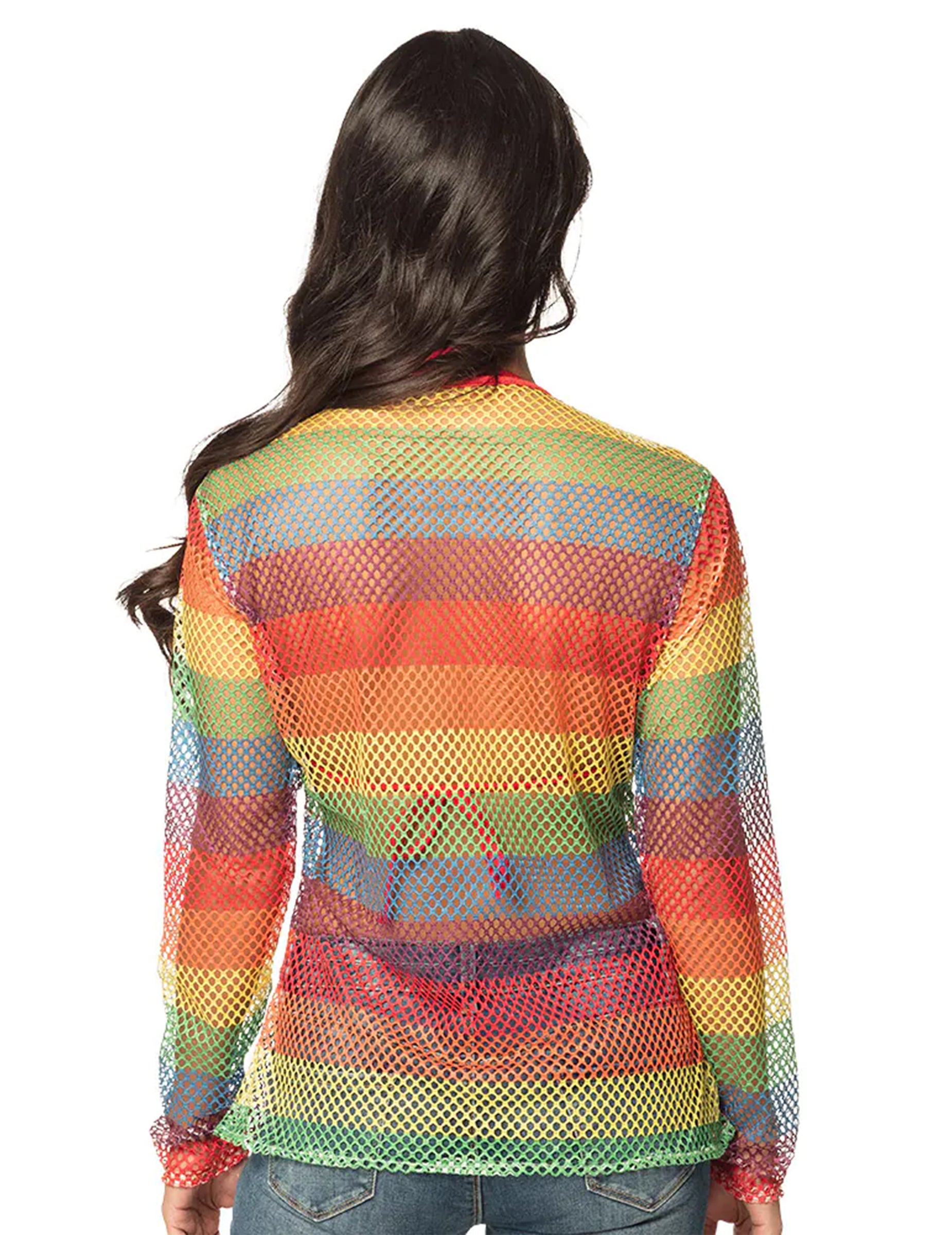 Ez női halháló felső hosszú ujjú ing széles csíkokkal szivárvány amik színesebbé teszik az öltözékedet.