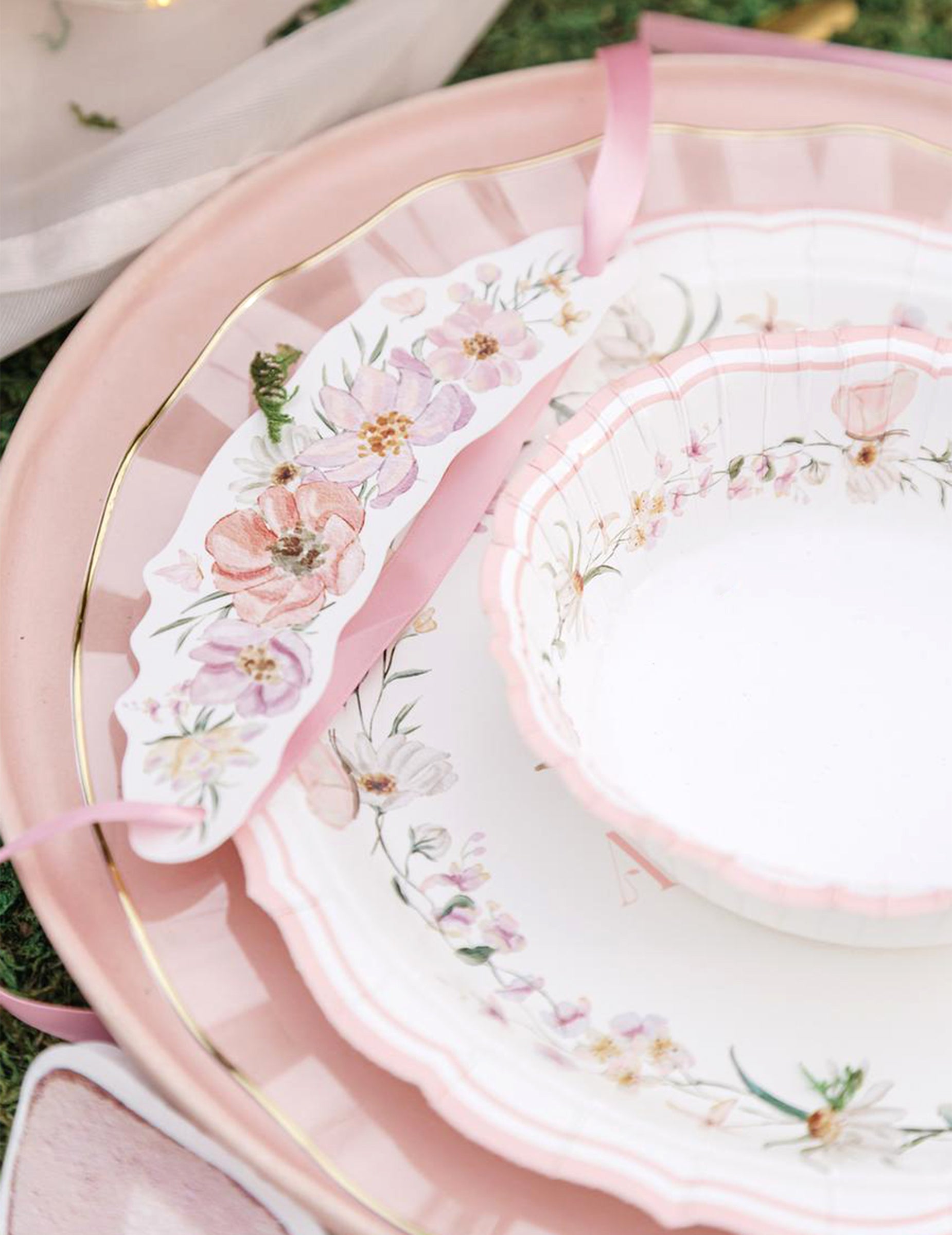 6 fehér és pasztellrózsaszín kartonból készült tündértál 13 cm születésnapra