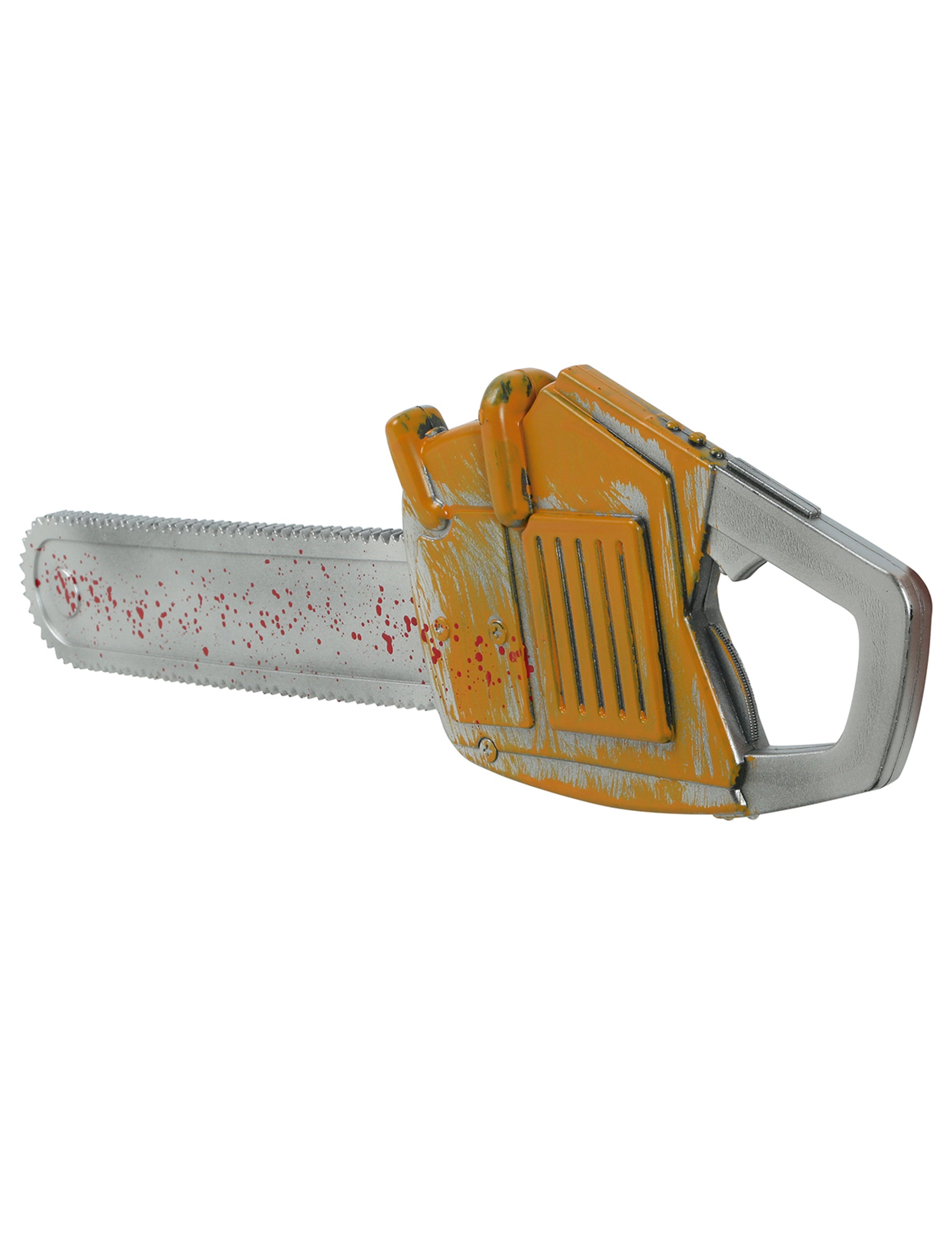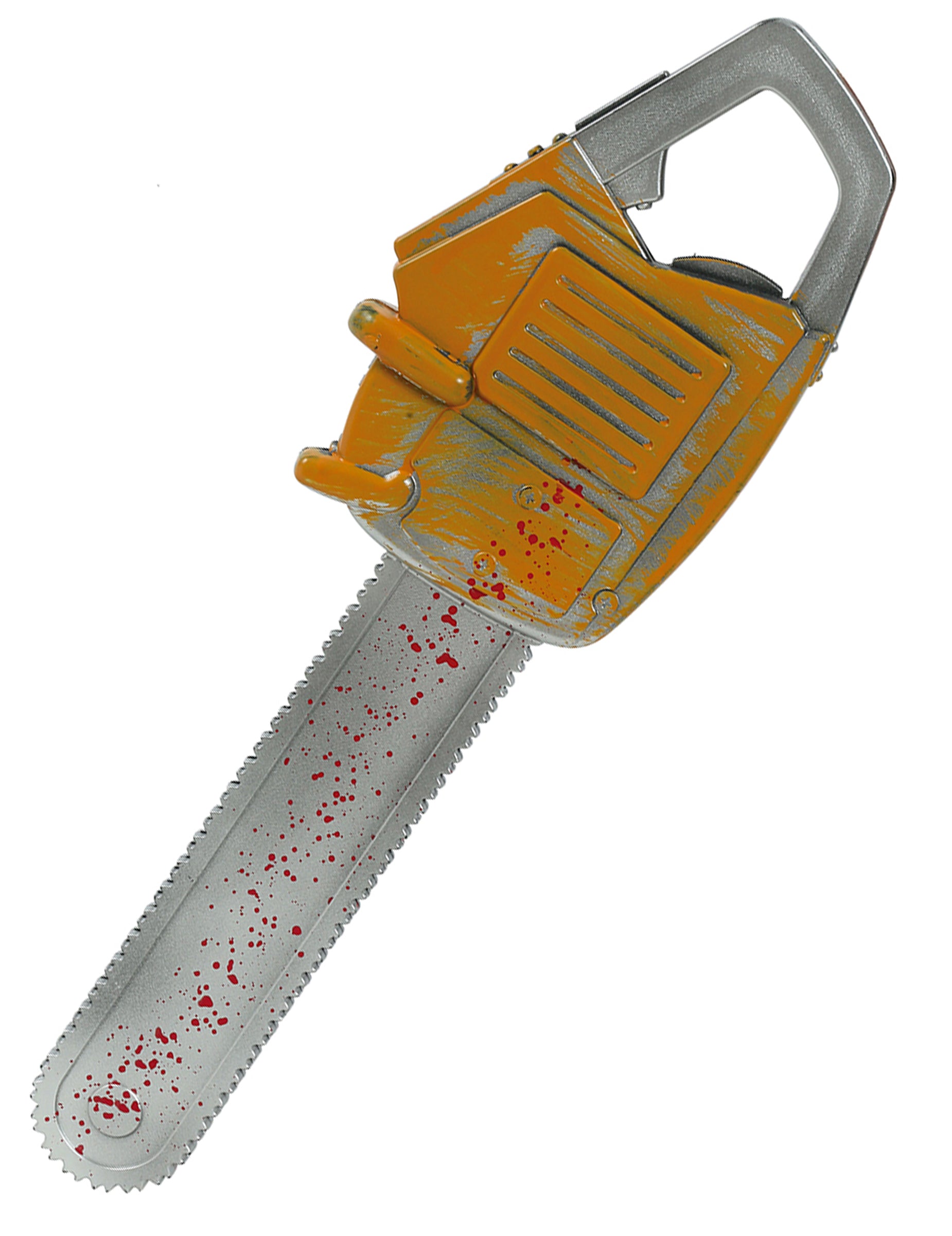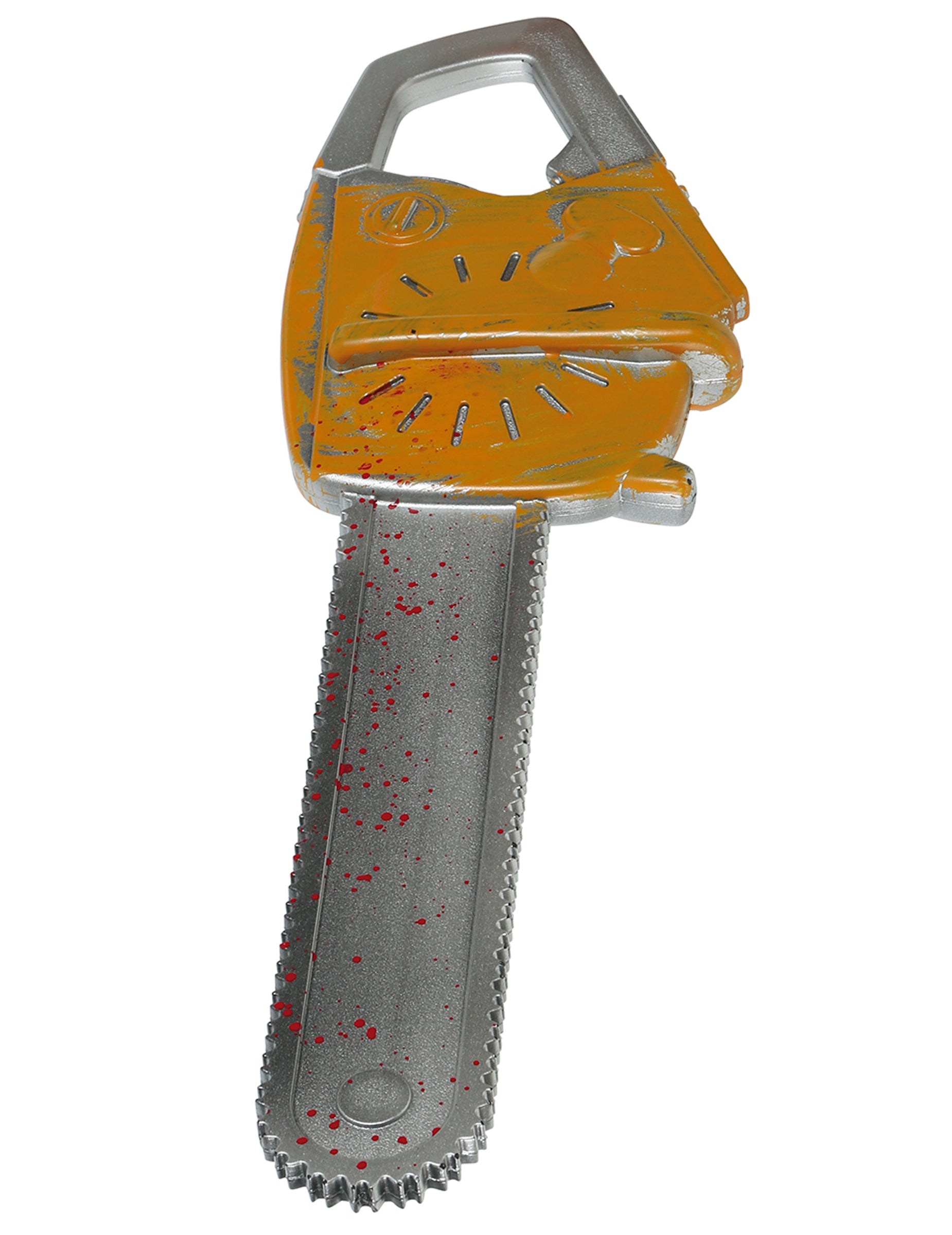 Cette fausse scie électrique de 54 cm environ est parfaite pour compléter un costume de boucher, de tueur ou de personnage effrayant. Fabriquée en plastique, elle présente une lame grise tachée de faux sang et un bloc moteur orange. Un accessoire simple et efficace pour apporter une touche horrifique à un déguisement d’Halloween ou à une fête sur le thème de la peur.