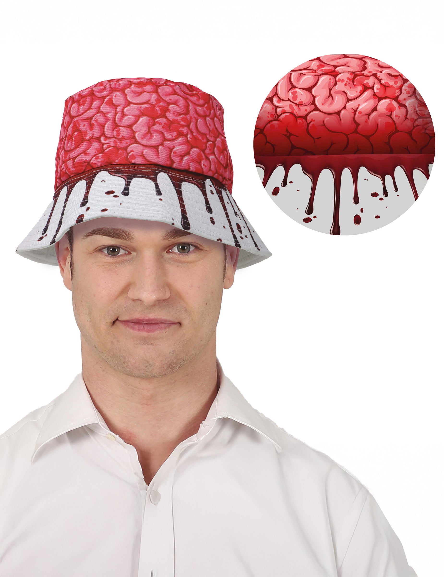 Ce bob cerveau ensanglanté pour adulte donne une touche horrifique immédiate à un déguisement de zombie ou de patient d’hôpital sorti d’un cauchemar. Avec son haut rouge imprimé d'un cerveau apparent et son bord blanc couvert de traces de sang, il attire tous les regards lors d’une soirée d’Halloween, d’un événement gore ou d’une fête à thème horreur. Un accessoire original pour compléter une tenue terrifiante sans en faire trop.