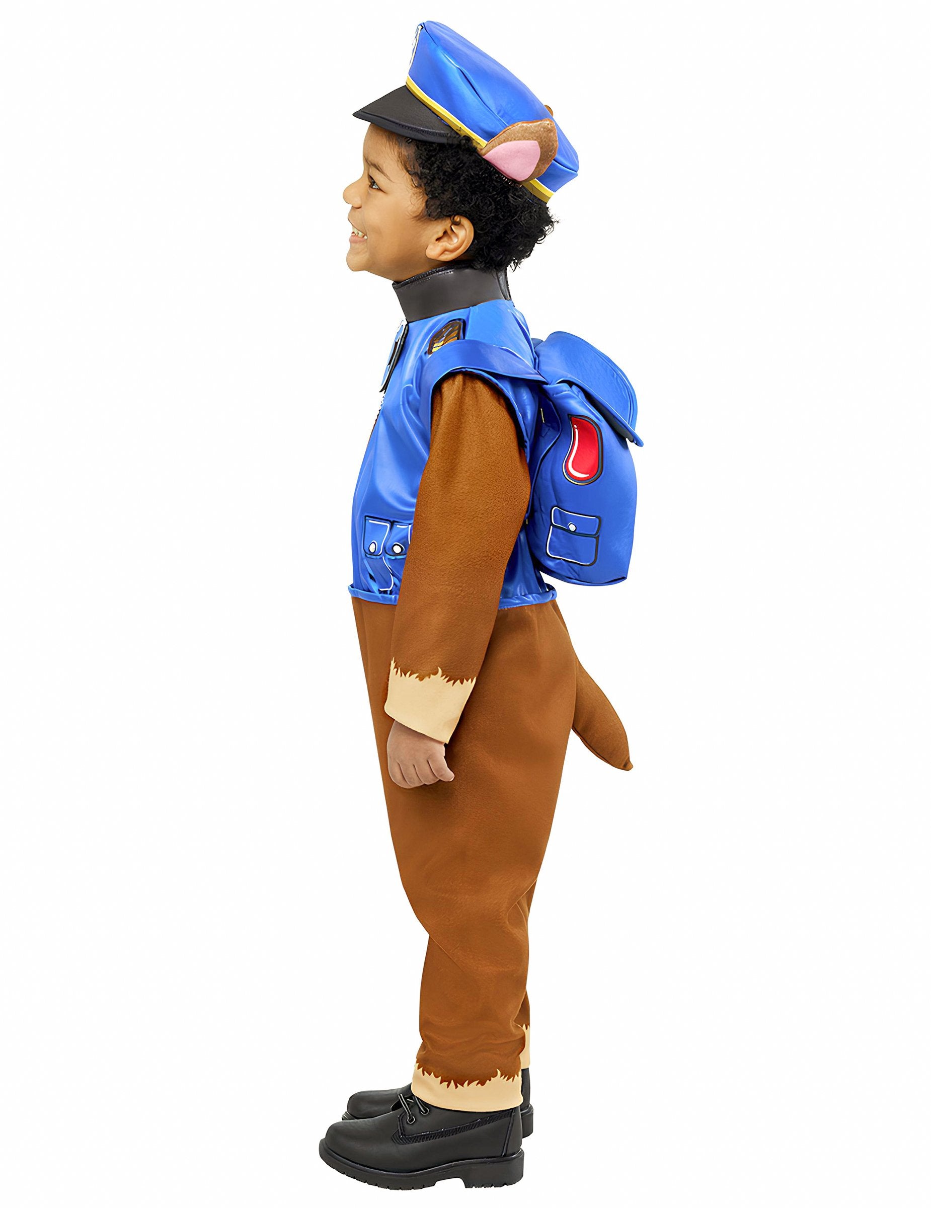 Transformez votre enfant en véritable héros avec ce déguisement luxe Chase Pat Patrouille ! Ce costume complet, inspiré du célèbre chiot policier, combine confort et fidélité au dessin animé pour des heures d'aventures pleines d'action. La tenue comprend une combinaison longue en tissu jersey, imitant la fourrure de Chase, avec un haut bleu satiné intégré et un insigne de policier cousu sur la poitrine. Un sac à dos en mousse rembourré, facile à attacher grâce à son scratch et ses deux bretelles, permet de ranger tous les accessoires de mission. L’ensemble est complété par une casquette de policier dotée d’oreilles rembourrées en mousse et du logo emblématique de la Pat Patrouille à l’avant. Idéal pour célébrer un anniversaire, défiler au Carnaval, se déguiser pour une fête ou simplement jouer à la maison, ce costume plongera votre enfant dans l’univers de la Pat’ Patrouille pour vivre ses propres aventures de sauvetage !